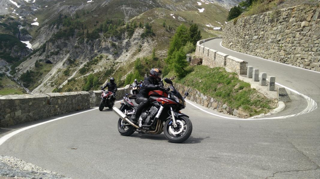 Das Stilfser Joch bin ich mit der CRF noch nicht gefahren, aber ansonsten jede Menge Haarnadelkurven, die weitaus anspruchsvoller sind (enger, überhöht, Schlaglöcher oder alles zusammen).