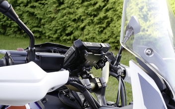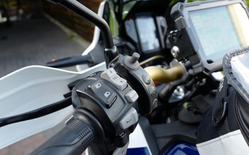 Zusätzlich gibt es noch den Tankrucksack Touratech Amado. Der Zustand der AT ist gut, gebraucht, aber kaum Macken. Handschützer links mit Schrammen von einer Mauer beim Rangieren, Koffer rechts mit kleiner Beule.