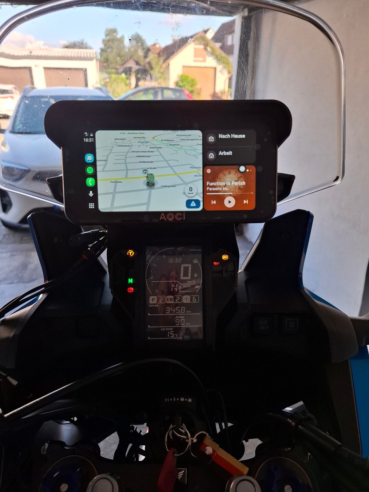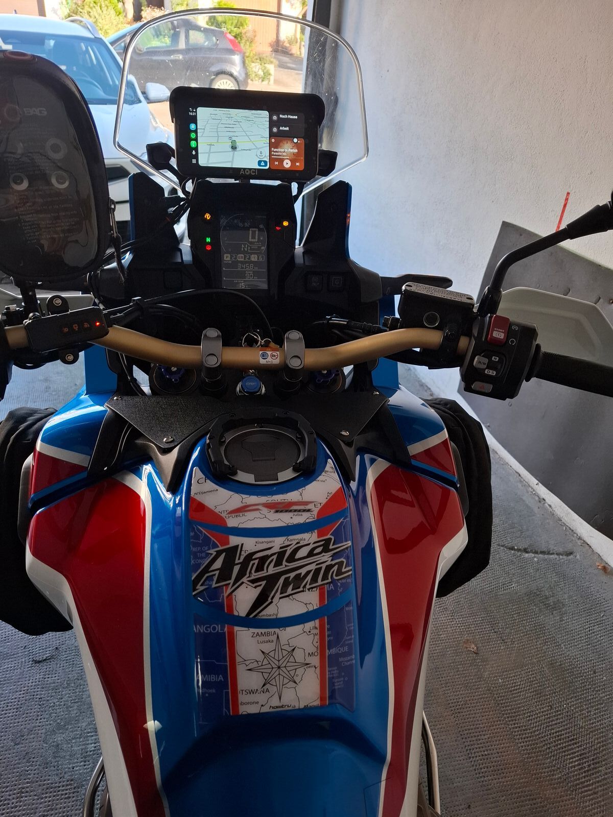 Sieht sehr gut aus. Ich habe ein Carpuride installiert, es hängt am Zündungsplus. Das nervt etwas, da es beim Anhalten (z.B. weil man den Track prüfen will) und kurzem Abstellen des Motors immer mit ausgeht. Ich überlege, es direkt an die Batterie anzuschließen, mit einem Schalter am Lenker. Wie hast Du den Anschluss gelöst?