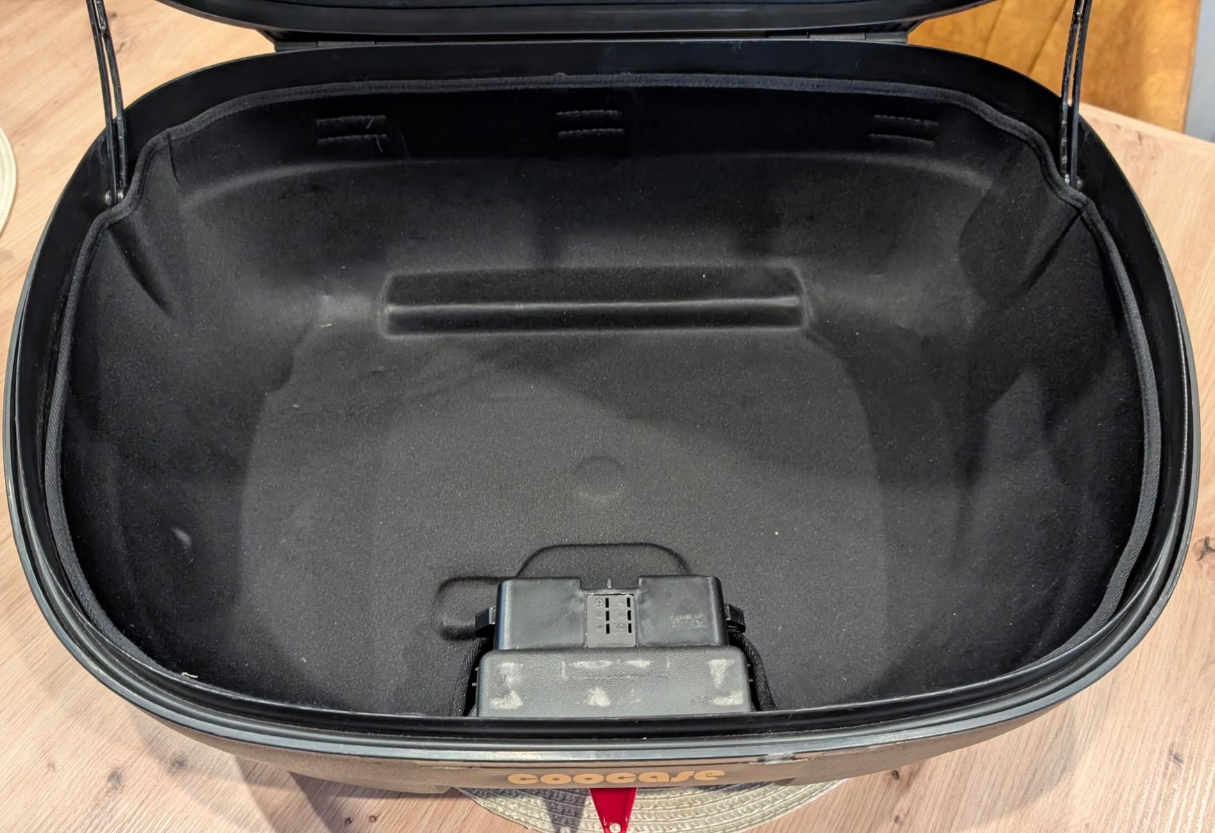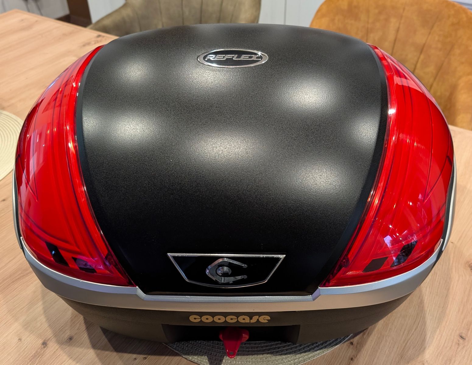 Habe noch ein 50L Topcase der Marke Reflex V50 hier liegen. Es sind 2 Schlüssel dabei und eine Adapterplatte.