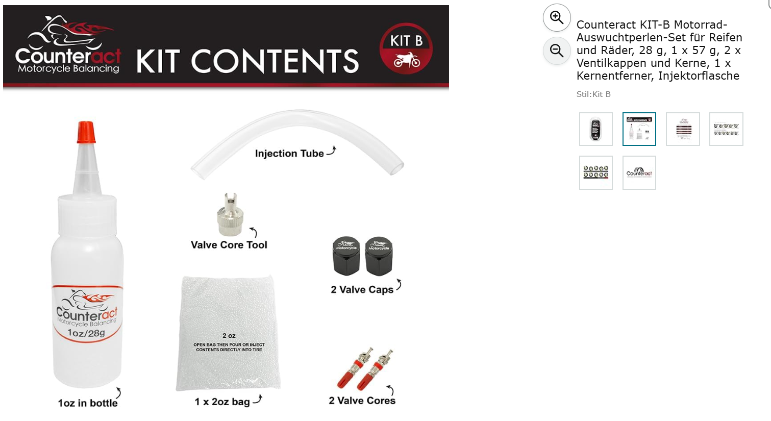Meine Frage ist: warum wird das bei Pkw und Motorrädern nicht üblich verwendet? In den USA werden diese Auswuchtperlen bei Pkw eingesetzt. Ein Kumpel hat vor kurzem welche in seine NC750 verwendet (vorne 30 g, hinten 50 g) und sagt, dass sie sauber läuft, ohne jegliche Vibrationen oder Unwuchten.