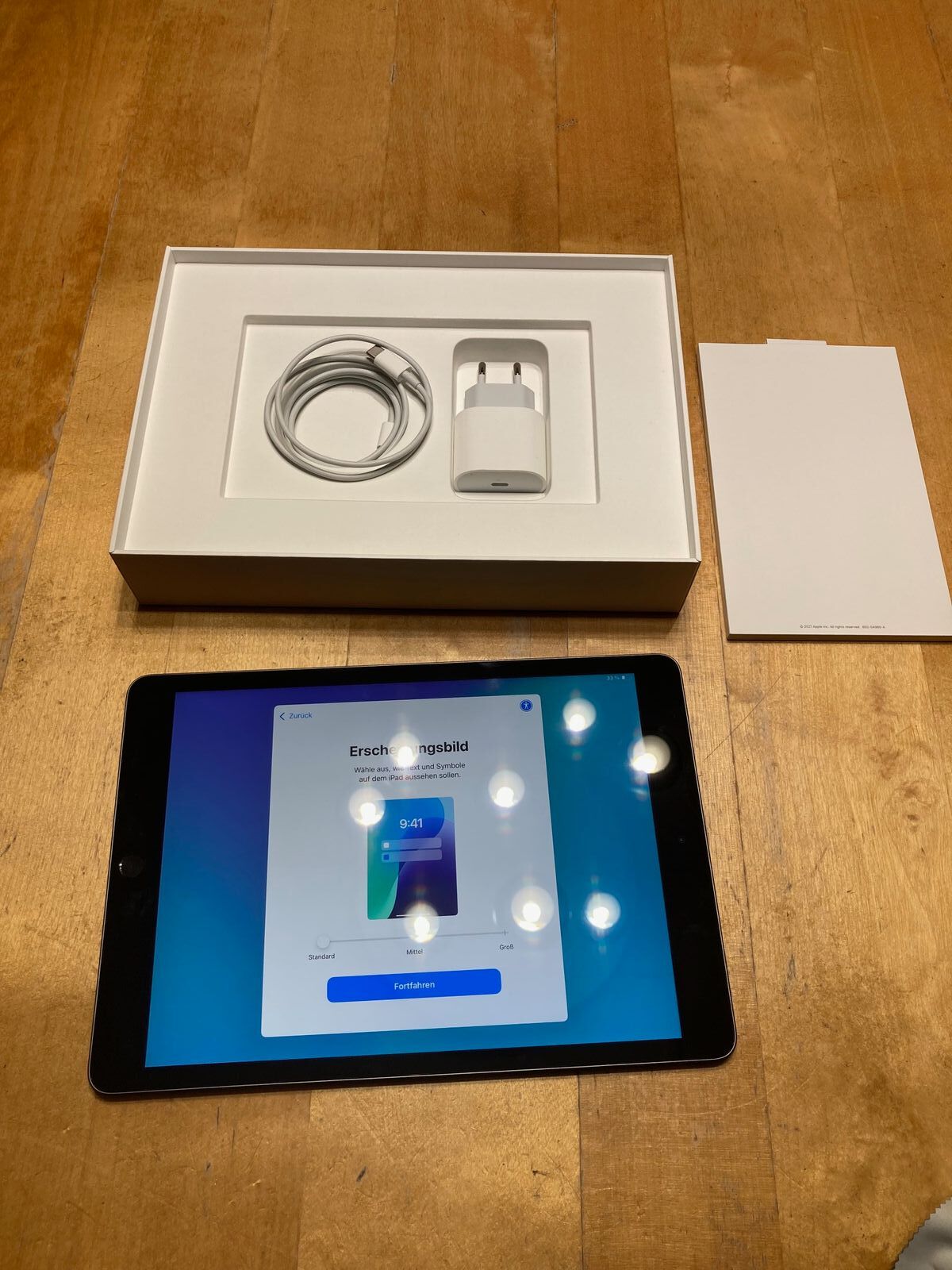 Ich verkaufe das Gerät wie abgebildet, also in einer Originalverpackung, mit dem Apple-Ladeadapter und dem mitgelieferten Ladekabel.
