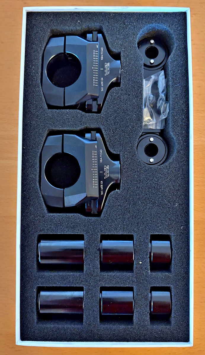 Genau, die Verbindung findet sich beim Einbau zwischen oberer Gabelbrücke und Lenkeraufnahme. Das bringt (erst recht bei mehr Gesamthöhe wenn man diese nutzt) zusätzliche Stabilität im Vergleich zu den OEM-Risern.