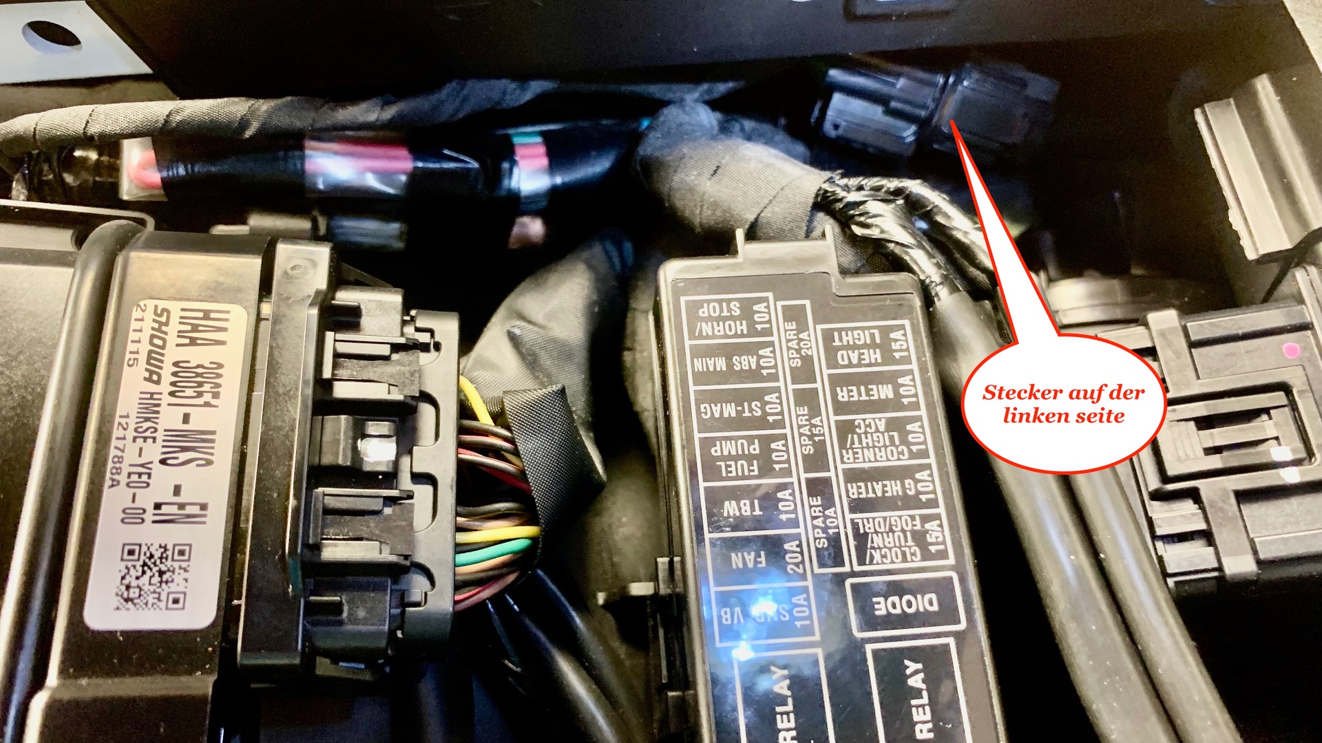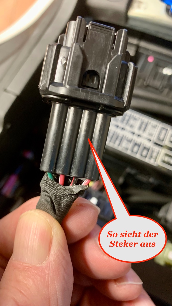 Wie heißt der Stecker, am Kabelbaum, mit Klebeband festgetüddelt, unter der Sitzbank? Ich brächte auch die Kennzeichnung des Gegenstücks (vielleicht mit Link zum Kauf