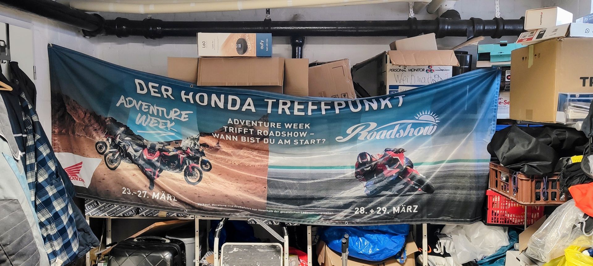 Hier ist ein Honda Banner im sehr guten Zustand. Hatte es in meiner Garage hängen. Garage ist nicht mehr, nu brauche ich das Banner auch nicht mehr.