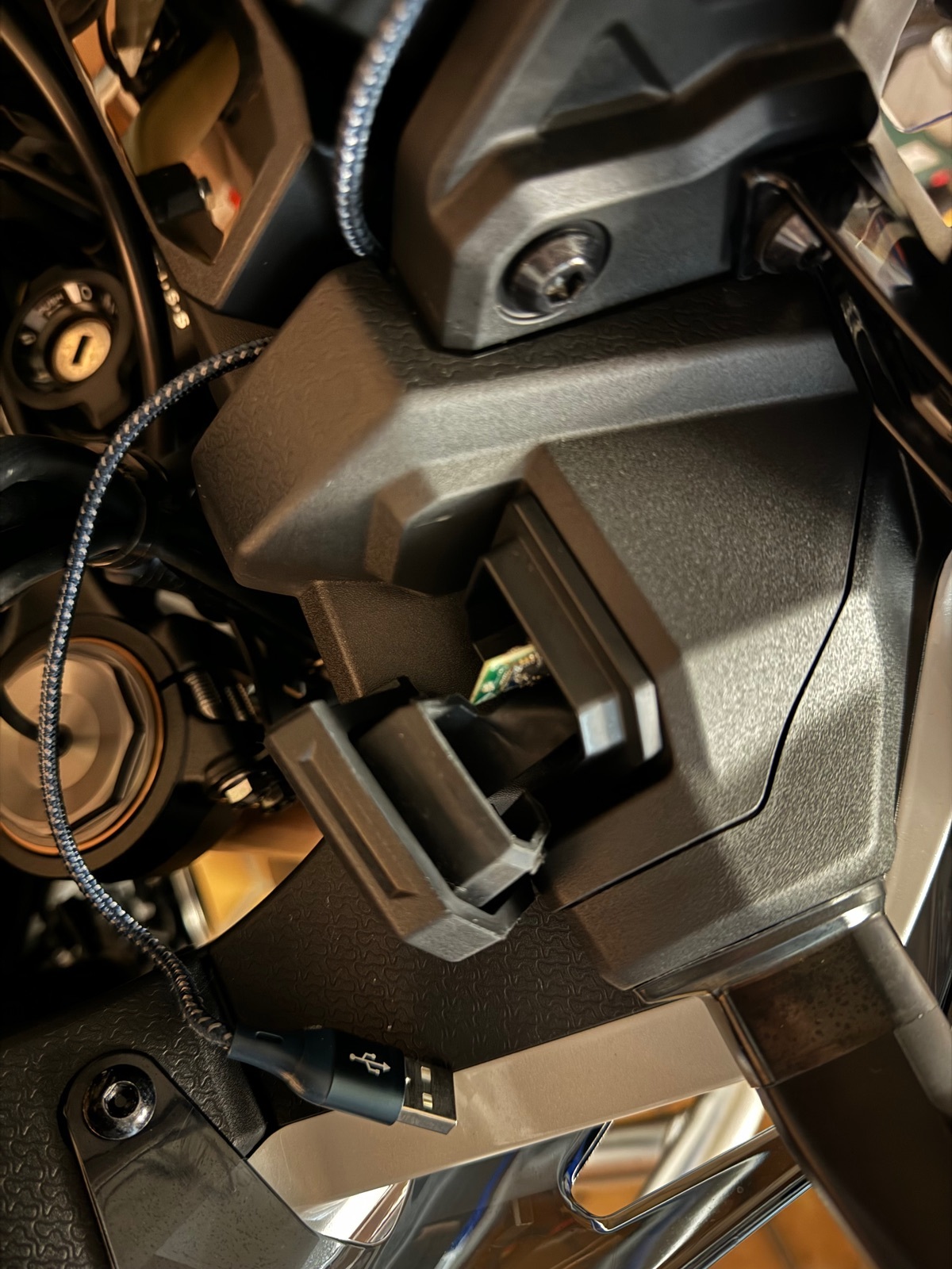 Auf den ersten Blick praktischer erscheinen die Wireless-Adapter in Form eines USB-Sticks: Einfach in die USB-Dose einstecken und gut. Allerdings ist diese Lösung in aller Regel nicht wetterfest, denn die Gummi-Abdeckung über der USB-Dose im Honda-Cockpit bietet nicht genügend Raum für fast alle gängigen USB-Sticks.