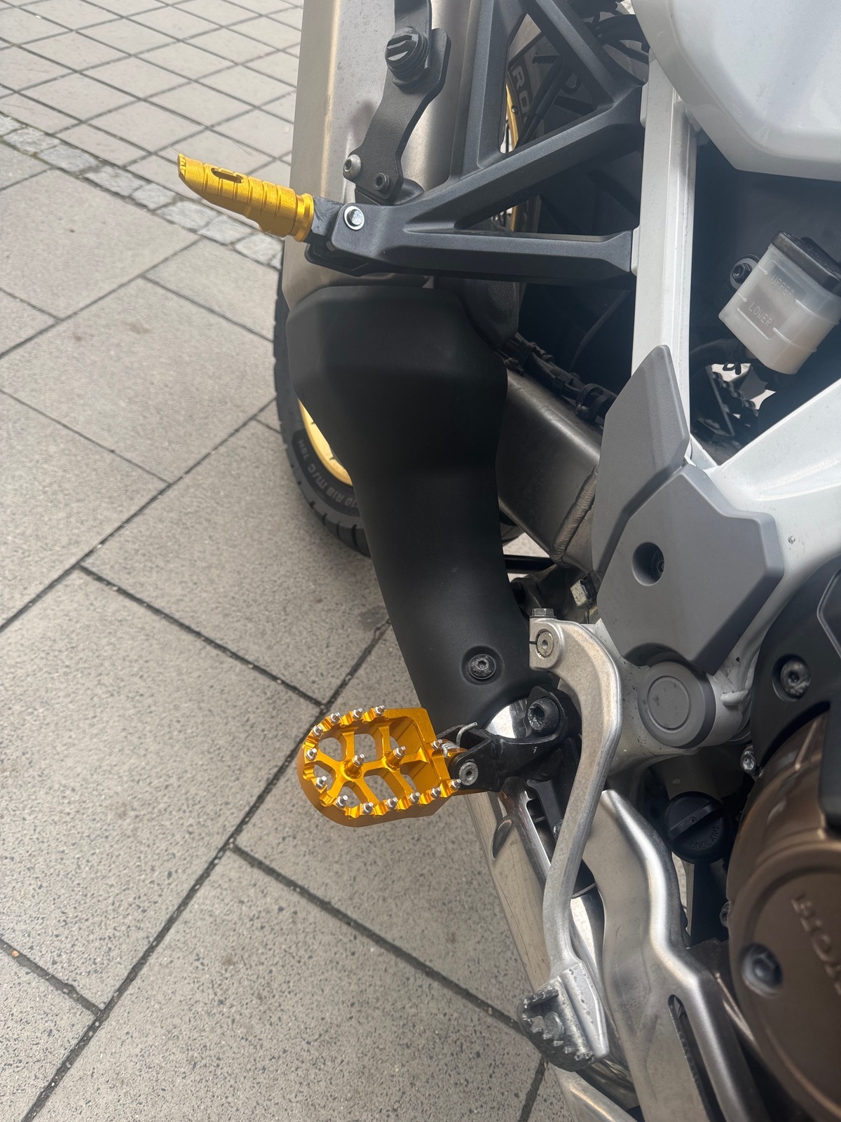 #4 Alles anzeigenFussstütze für Fahrer und Sozius in Goldfabe passt gut mit Felgen und Gabel,