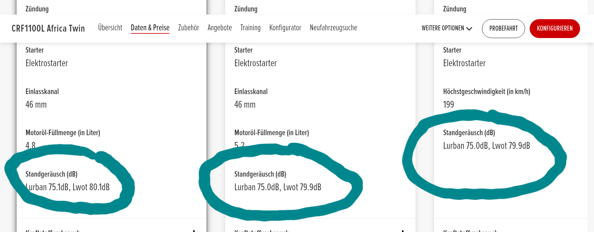 Ich habe gerade mal auf der Honda-Website nach den Standgeräuschen der aktuellen ATs gesucht, und da ist mir etwas merkwürdiges aufgefallen: