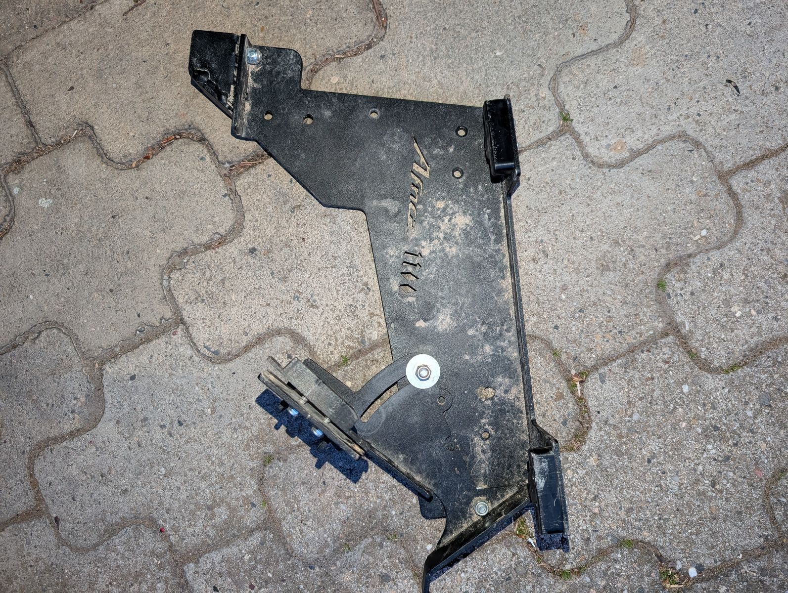 Jetzt möchte ich den Mechanismus vom Koffer nachbauen um eine einfache Halteplatte für Seitentaschen zu realisieren. Quasi wie ein Koffer/Taschen-Träger nur ohne das ganze Rohrthema. Soll dann schnell montierbar sein wie die Koffer von Koboldbike bzw. Honda aber auch einen Sturz abkönnen da die Seitentaschen dann als Puffer dienen.