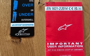 Zu der Hose gehört ein Thermofutter welches ich allerdings nie getragen habe. Drüber hinaus eine wasserdichte Drystar®-Membran. Diese kann über oder unter der Hose getragen werden. Protektoren für Knie und Hüfte dabei.