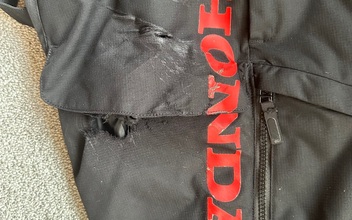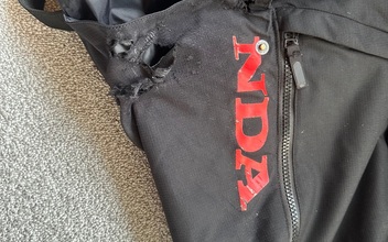Die Hose hat Abschürfungen auf der rechten Seite am Oberschenkel (siehe Bilder).