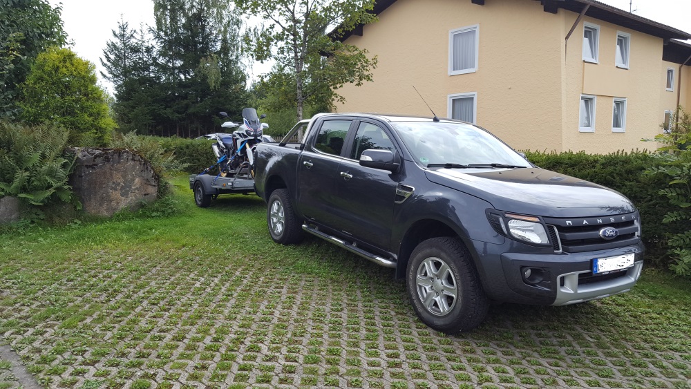 Als ich im September im Allgäu war, bin ich mit einem Auto und Motorradanhänger die Strecke gefahren.