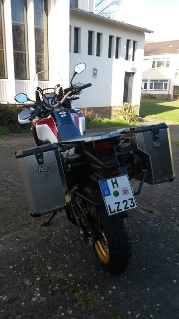 Hab Seitenkoffer in 38l gekauft. Machen einen sehr stabilen Eindruck, lassen sich leicht an- und abbauen. Deckel auch komplett abnehmen, hab auch gleich die Koffertaschen dazu genommen.
