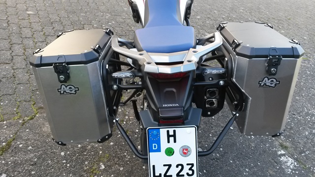 CRF1000L DCT, Tricolor, CLS-Öler, SW-Motech Quick-Lock Träger, Steelrack, Trax-System