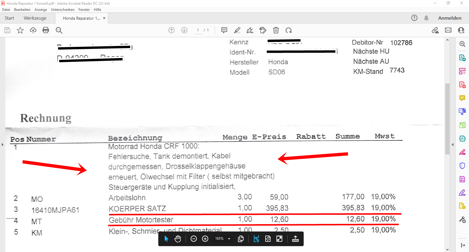 ). Reparatur etwa 600€, da der Sensor kaputt war und Honda nur die ganze Drossel-Geschichte als Ersatzteil anbietet. Briefe an HONDA nützten nix...die haben sich auf den nichtgemachten Service berufen, obwohl das ja nicht mein Verschulden war....der Vorbesitzer verpennte den Service. -