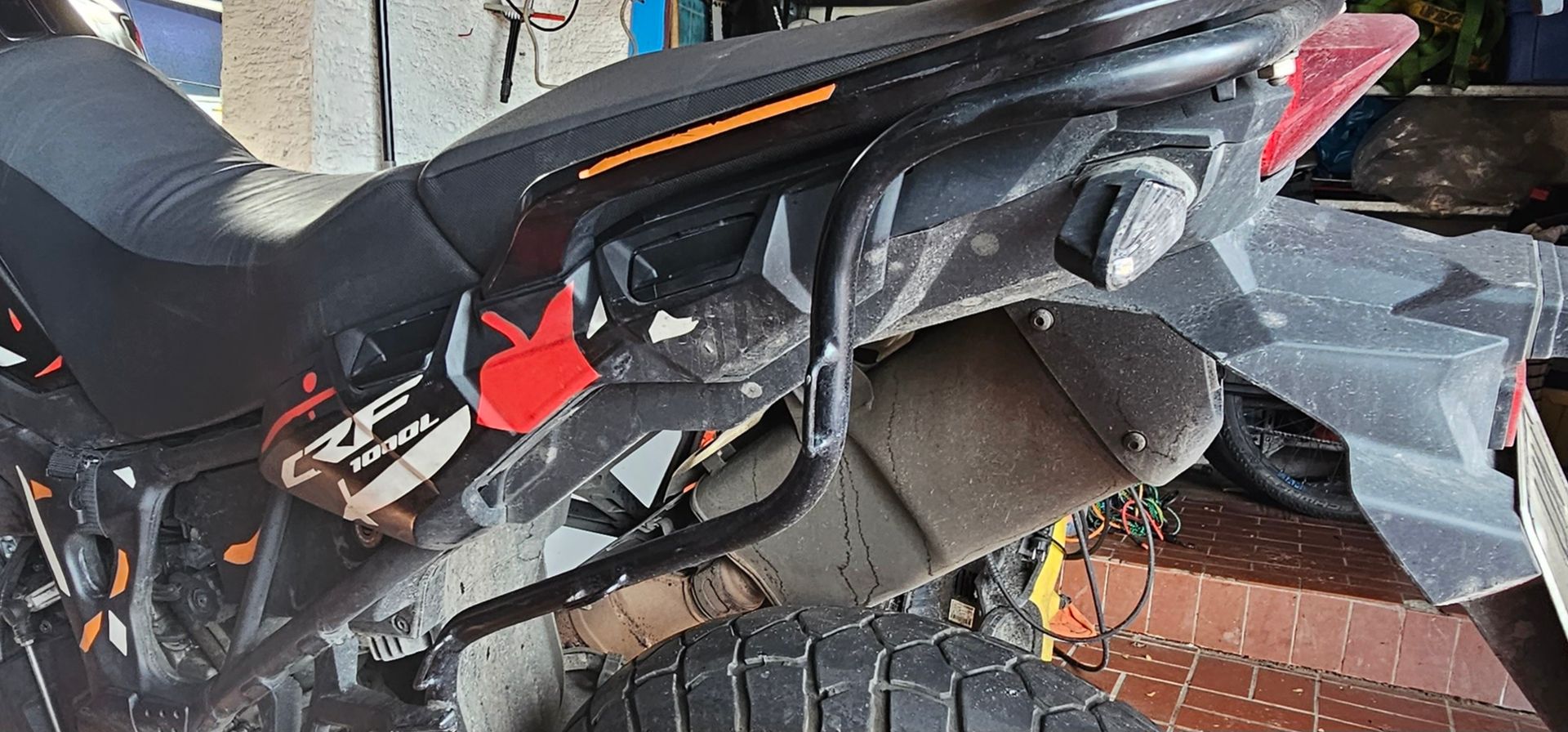 #126 Die Befestigung erfolgt über einen von mir selbst gefertigten Bügel. Der Auspuffhitzeschutz der Africa Twin genügt um zerstörungsfrei sein Gepäck transportieren zu können. Mit dieser Taschen- und Bügelkonfiguration fahre ich schon seit Jahren. Bei den Spanngummis schwöre ich seit einigen Jahren auf die Gurt Qualität der polo Gummis. Mit diesen Spanngummis, die übrigens mit Kunststoffhaken versehen sind, habe ich über 40 km eine 990 adventure durch die Pyrenäen abgeschleppt. Da ich sehr häufig ernsthafte offroad Einsätze plane und fahre, glaube ich mich dem Optimum angenähert zu haben. Bei meiner 701 fahre ich übrigens Enduristantaschen. Bei meinen Reisen ist das Zelt immer als Backup dabei. Gibt einem einfach ein besseres Gefühl.🙂