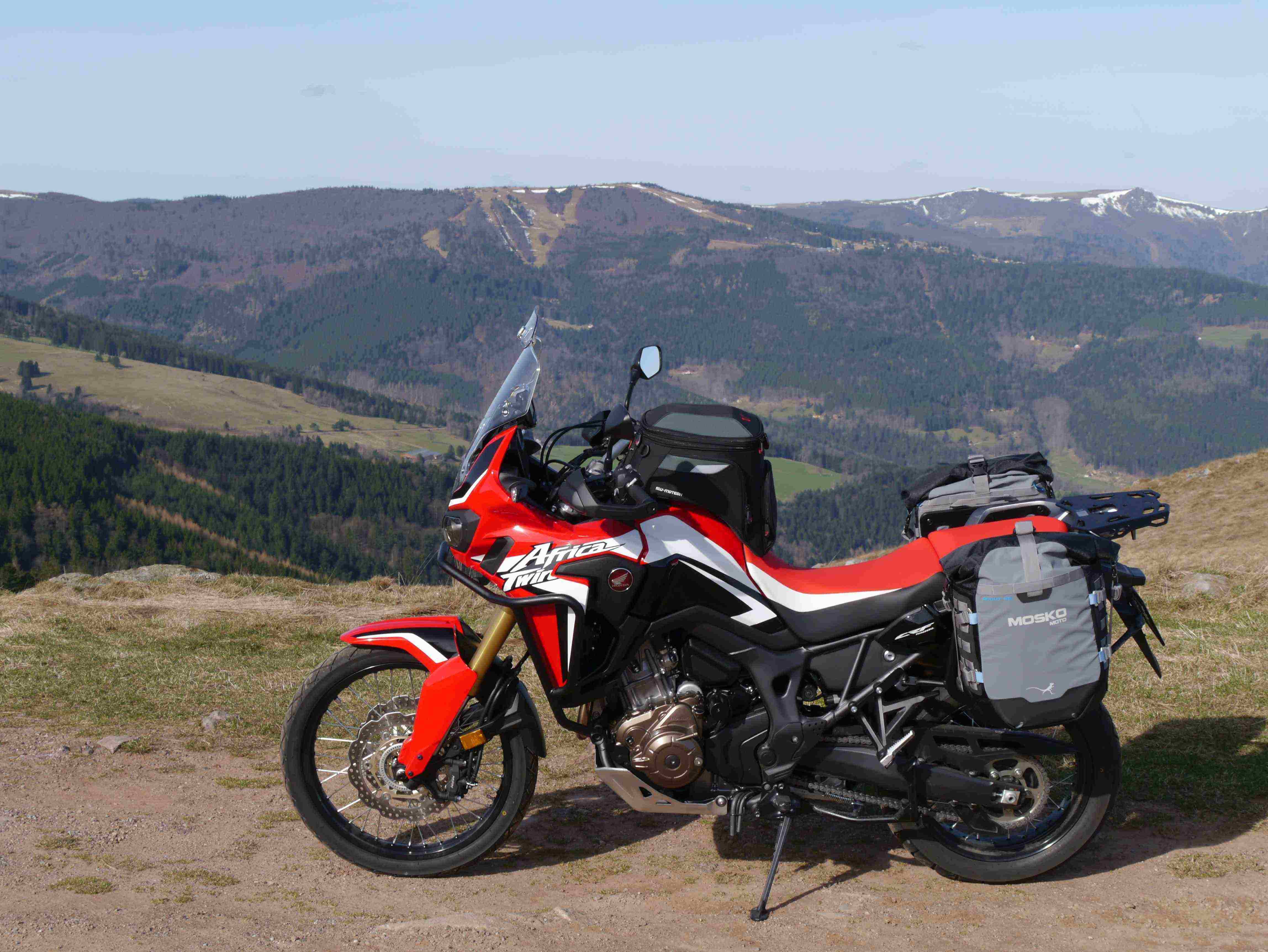Aber nun zu den Softbags. Hier nochmal das Vogesenbild mit den Mosko Moto Scout 25l Panniers.