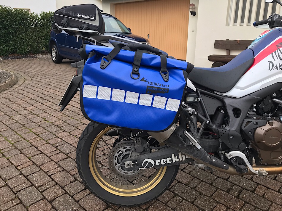 Das Wolfman System hat es letztes Jahr noch nicht gegeben, das wäre eine Alternative gewesen. Allerdings sind, wenn ich mich recht erinnere, nur die Expedition Dry Saddelbags von Haus aus wasserdicht.