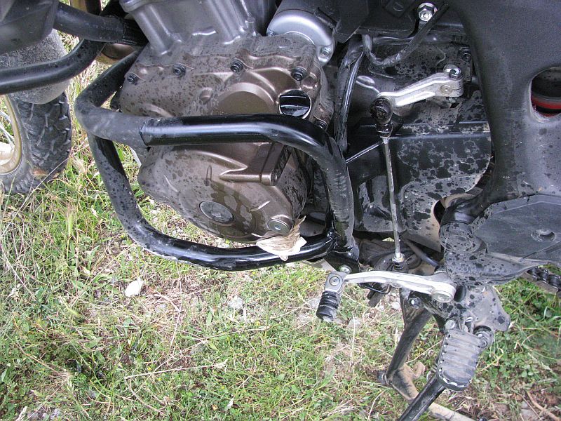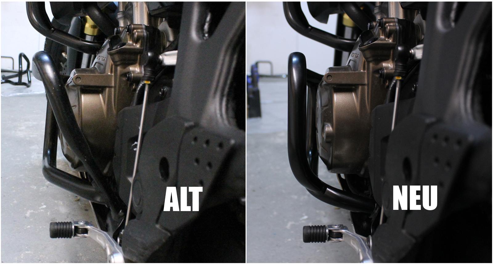 da sich auch die Zubehörhersteller nicht auf ihren Lorbeeren ausruhen und aus Fehlern lernen, sind bei Hepco und Becker die Motorschutzbügel noch einmal überarbeitet worden. Unter anderem hier im Forum kursierten Bilder, bei denen durch Deformationen an Bügeln Schäden entstanden sind, die eine Weiterfahrt unmöglich machten. Ich klau hier mal Bilder, um einen der größten Schwachpunkte zu verdeutlichen: