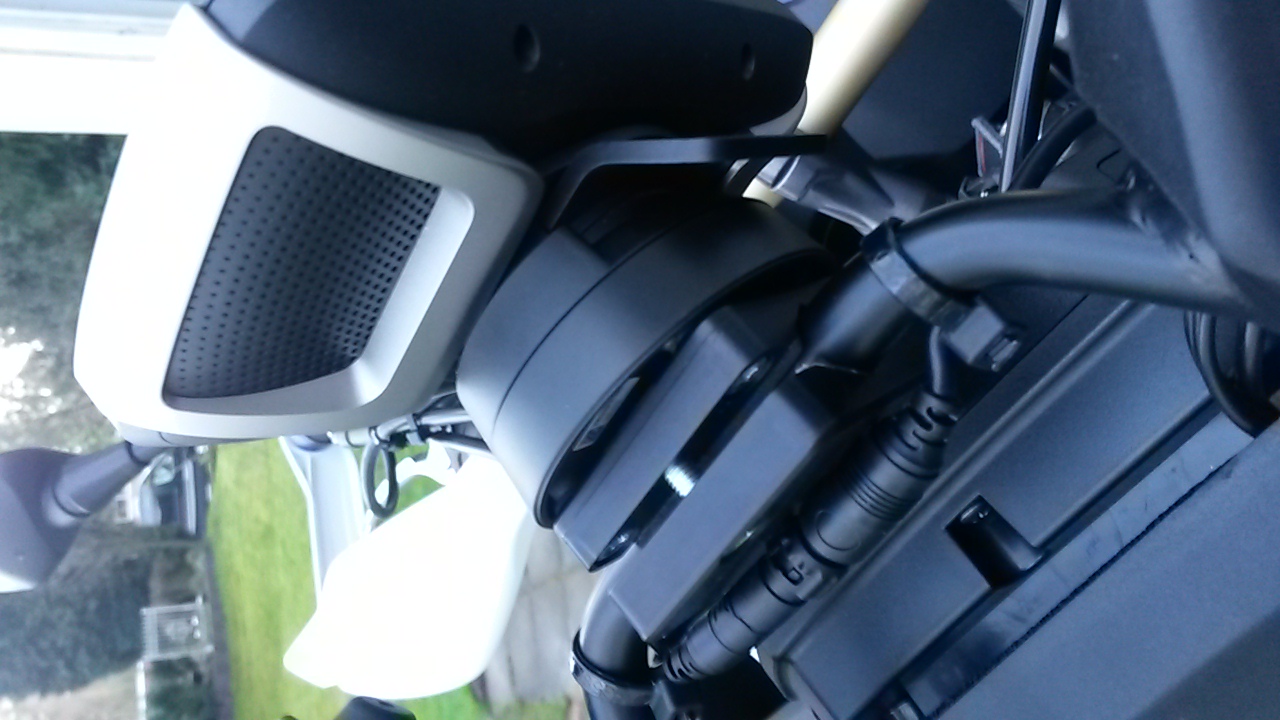 An dem Bügel über dem Tacho bietet sich an, weil du das Kabel dann auf kürzestem Weg an den Zubehörstecker dahinter führen kannst, sieht schön aufgeräumt aus und das Gerät ist etwas besser vor Wind und Wetter geschützt.
