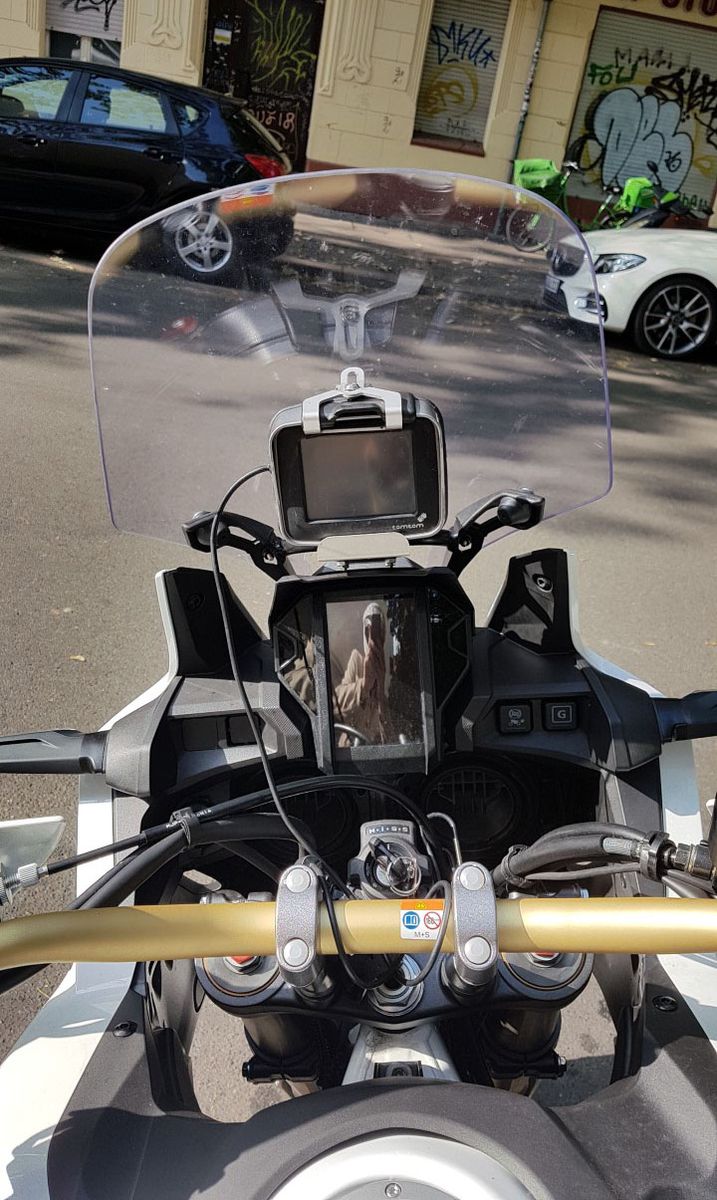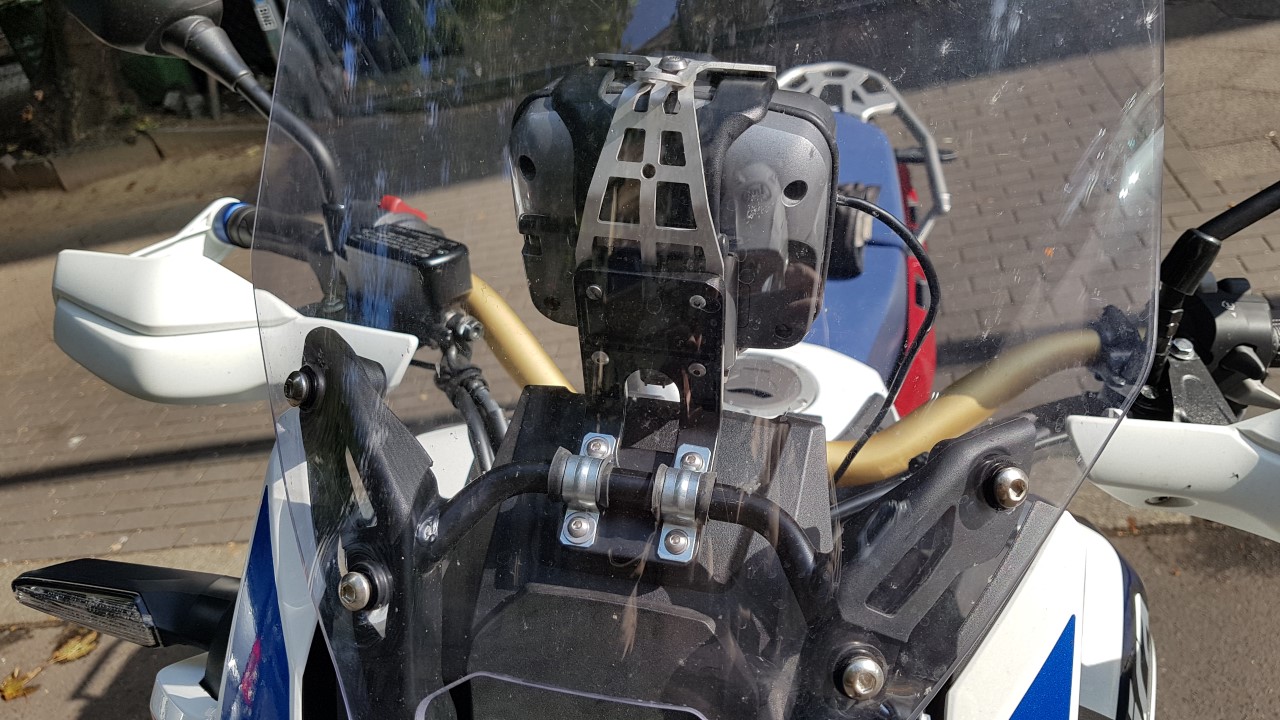 Als nächstes werde ich noch einen kleinen Gummipuffer zwischen Scheibe und die Lasche des Wunderlich Extreme Halters setzen. Schlägt sonst im Gelände von innen ans Windschild.