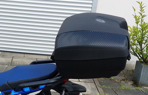 Meine Sozia ist voll mit der Rückenlehne am Topcase zufrieden und ein Helm passt auch locker rein.