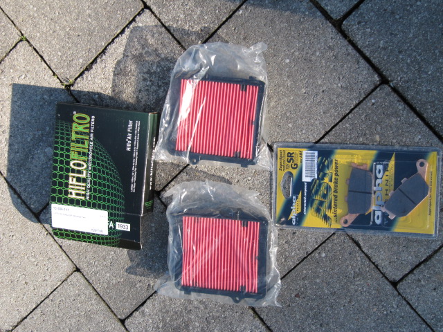 ich habe mich entschieden meine 24000km Inspektion selbst zu machen. Obwohl ich noch 10 Monate Garantie habe. Beim Ventilspiel war ich positiv überrascht. Alle Ventile lagen in der Toleranz. Zylinder 1 Einlaß 0,19 u. 0,18 . Auslaß 0,23 u. 0,24. Bei Zylinder 2 Einlaß 0,18 u. 0,17 Bei Auslaß 0,25 u. 0,24 mm. Soll beim Einlaßventil ist 0,16+- 0,03 beim Auslaßventil 0,23+-0,02 mm. Im Normalfall tendieren die Ventile enger zu werden da sie sich in den Ventilsitzen setzen . Also alles im grünen Bereich und gut Luft nach oben. Wichtig , daß die Ventile nicht zu eng sind, beim weitem Ventil bin ich und mein freundlicher Suzuki Fachmann eher skeptisch. Bei meiner kleinen V Strom ist das Ventilspiel+- 0,05 also 0,1 Toleranz bei Ein u. Auslaß.. Bei unserer Afrika Twin beim Einlaß Toleranz von 0,06 und beim Auslaß Toleranz von 0,04 also hier nicht mal die Hälfte der V Strom welche auch Tassenstößel und Shims hat. Die Luftfilter habe ich bei alpha Technik bestellt je 14,95 € das Stück .Sie machen einen wertigen Eindruck. Die Bremsklötze hinten hatte ich schon kurz vorher gewechselt. Es sind die gleichen wie bei meiner V Strom ebenfalls Sintermetallbeläge von Alpha Technik für 22Euro