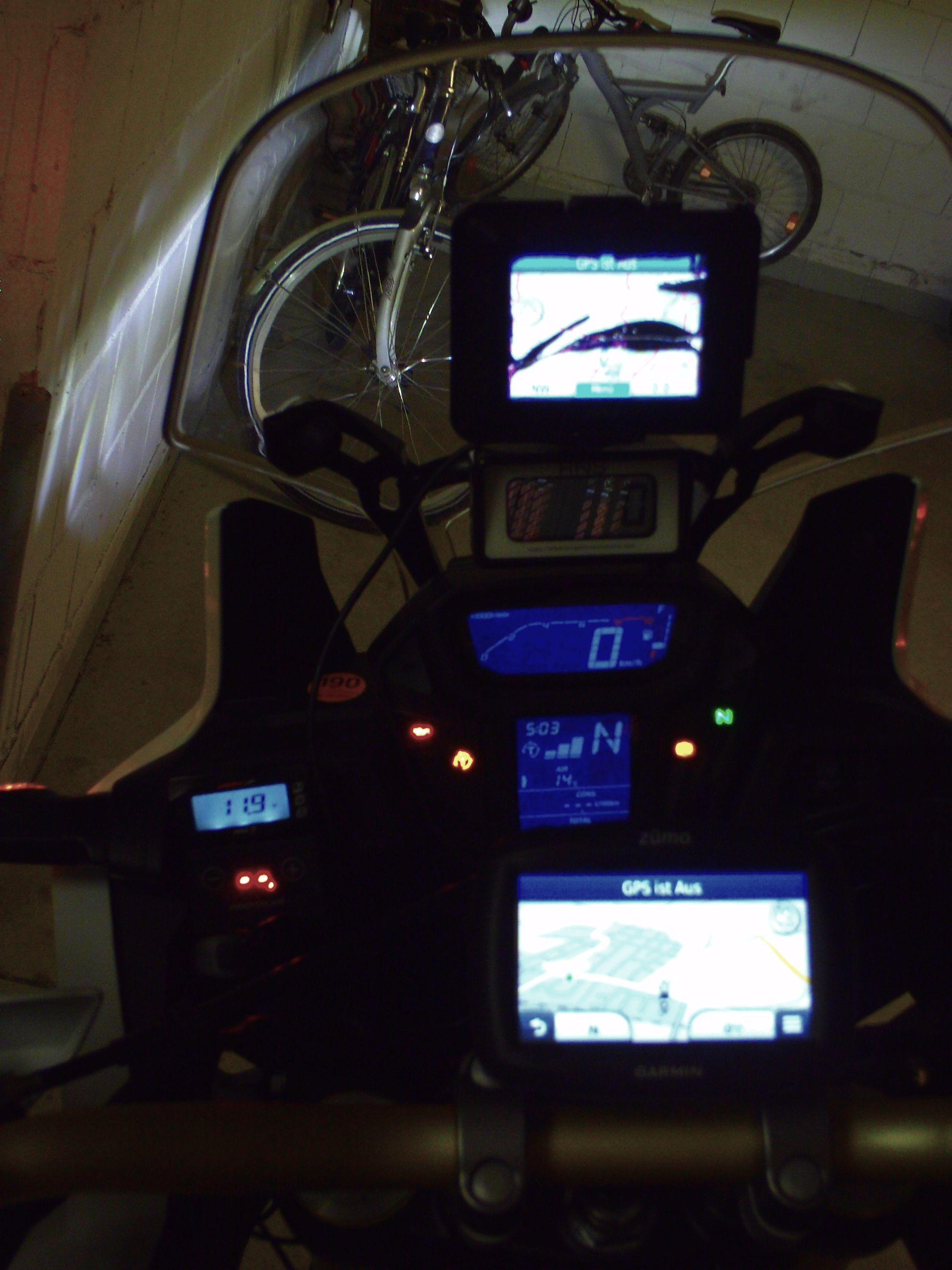Das Navi kommt auf jeden Fall an die Mittelstrebe, aber wohin mit dem Tripmaster? -