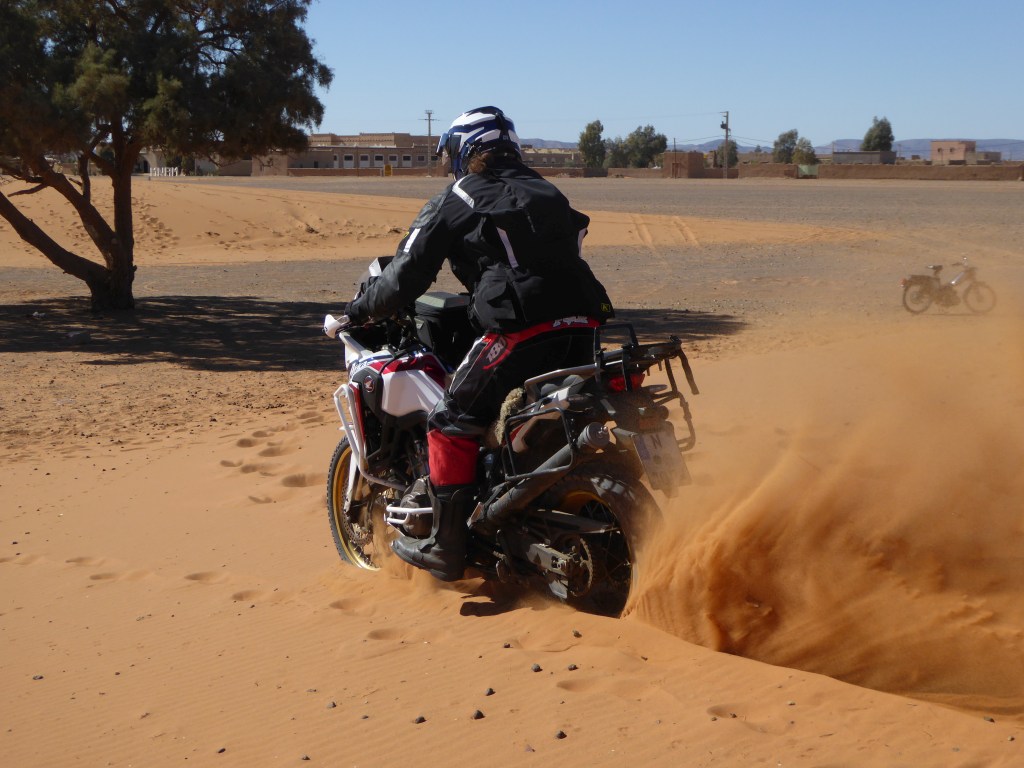 Ja, ich bin da aus eigener Kraft wieder befreien können. Über den Seitenständer konnte ich die Räder wieder höher kriegen. Da kann man mal sehen, dass eine Seitenständerverbreiterungen, doch kein Quatsch ist
