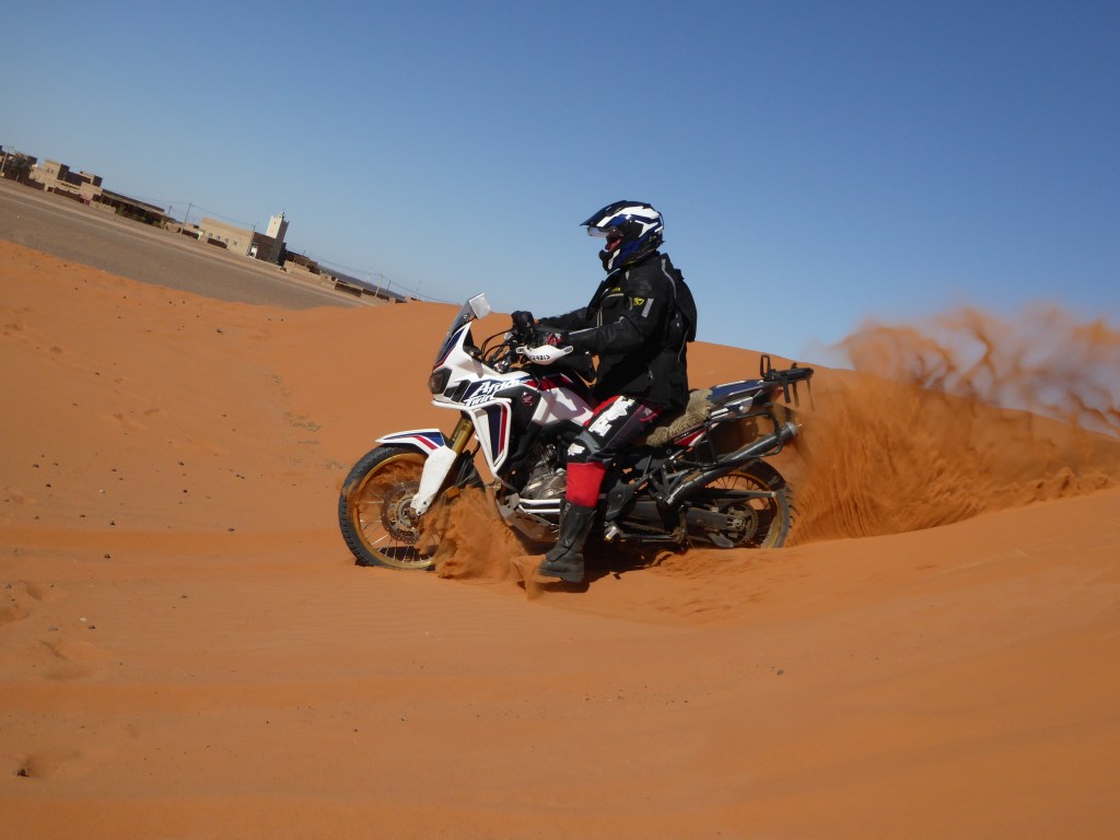 Da gibt’s noch ne kleine Anekdote. Im Dez. 15/Jan.16 war ich auch im Erg Chebbi, damals mit meiner Ex (MT07) und meiner Varadero SD02. Ich bin ja kein Freund der Touri-Tripps und hab das Kamelreiten immer vermieden, aber mit der Frau …