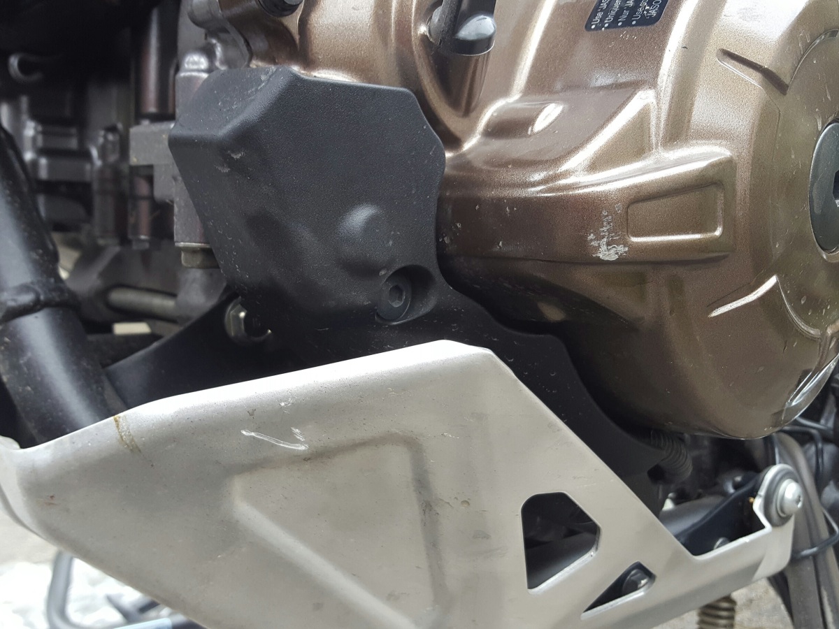 Ja, unser Schätzchen ist wohl sehr empfindlich. Es gibt schon einige Fotos von Löchern im Gehäuse – hab ja auch eins beigesteuert. So ein Gehäuse aus Alu-Druckguss kann man nicht wirklich stabil bauen, da hilft nur ein gut umschließender Schutz – dieser fehlt bislang. Solche Ausrutscher bei niedriger Geschwindigkeit kommen schon mal vor, dazu braucht es nicht viel. Das Netz ist voll von tollen Reiseberichten, wo die Protagonisten auch ihre kleinen Missgeschicke dokumentieren. Wenn ich jedes Mal damit rechnen muss, dass es mir gleich ein Loch ins Getriebe haut und das Öl auf der Straße liegt ist das schon frustrierend….