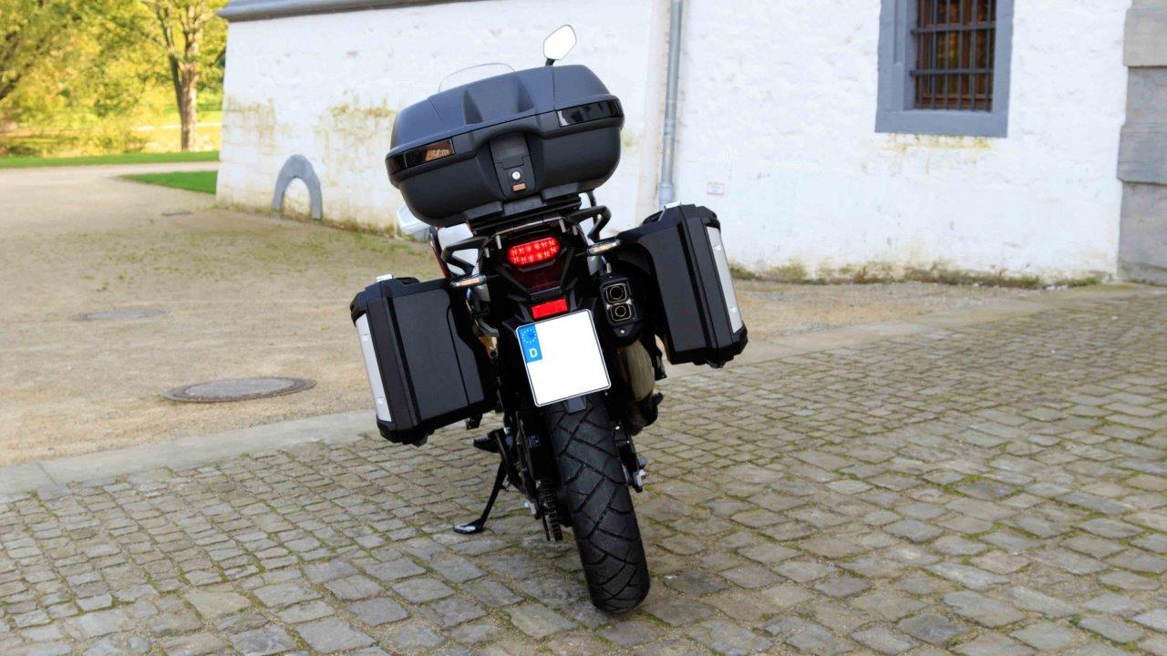 #39 Hier nun auch meine Kombi der originalen Seitenkoffer mit meinem bisherigen Honda Topcase meiner vergangenen Transalp. Leider passte die Platte nicht zur AT. Habe mir daher eine Aluminiumplatte als Zwischenplatte mit dem Lochbild der AT und dem des Kofferplatte angefertigt. Habe den Koffer näher an die hintere Kante der Sitzbank positioniert. So sieht das Topcase nicht so freischwebend aus. Soziusbetrieb ist natürlich weiterhin möglich. Die schwarzlackierten Leisten an dem Topcase werde ich noch in Aluoptik folieren lassen, damit er zu den Seitenkoffern passt.