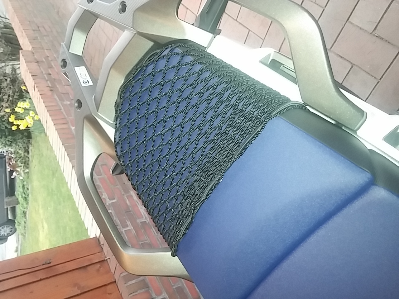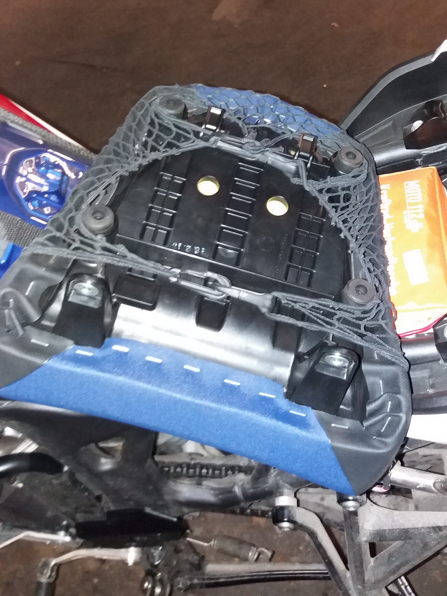 Seit Jahren nutze ich diese Gepäcknetze für meine Motorräder. Gut für Regenkombi, Jacke, kleine Einkäufe, Trinkflasche usw. Sie stammen aus dem Kanuzubehör und nenen sich "Decknetz". Es gibt sie in verschiedenen Größen, einfach mal bei ebay schauen. Kann man direkt unter und an der Sitzbank mit Kabelbindern befestigen (vorher 4 Löcher 4mm in die weißen Stege bohren). Ich dachte mir, dass auch andere davon profitieren können.