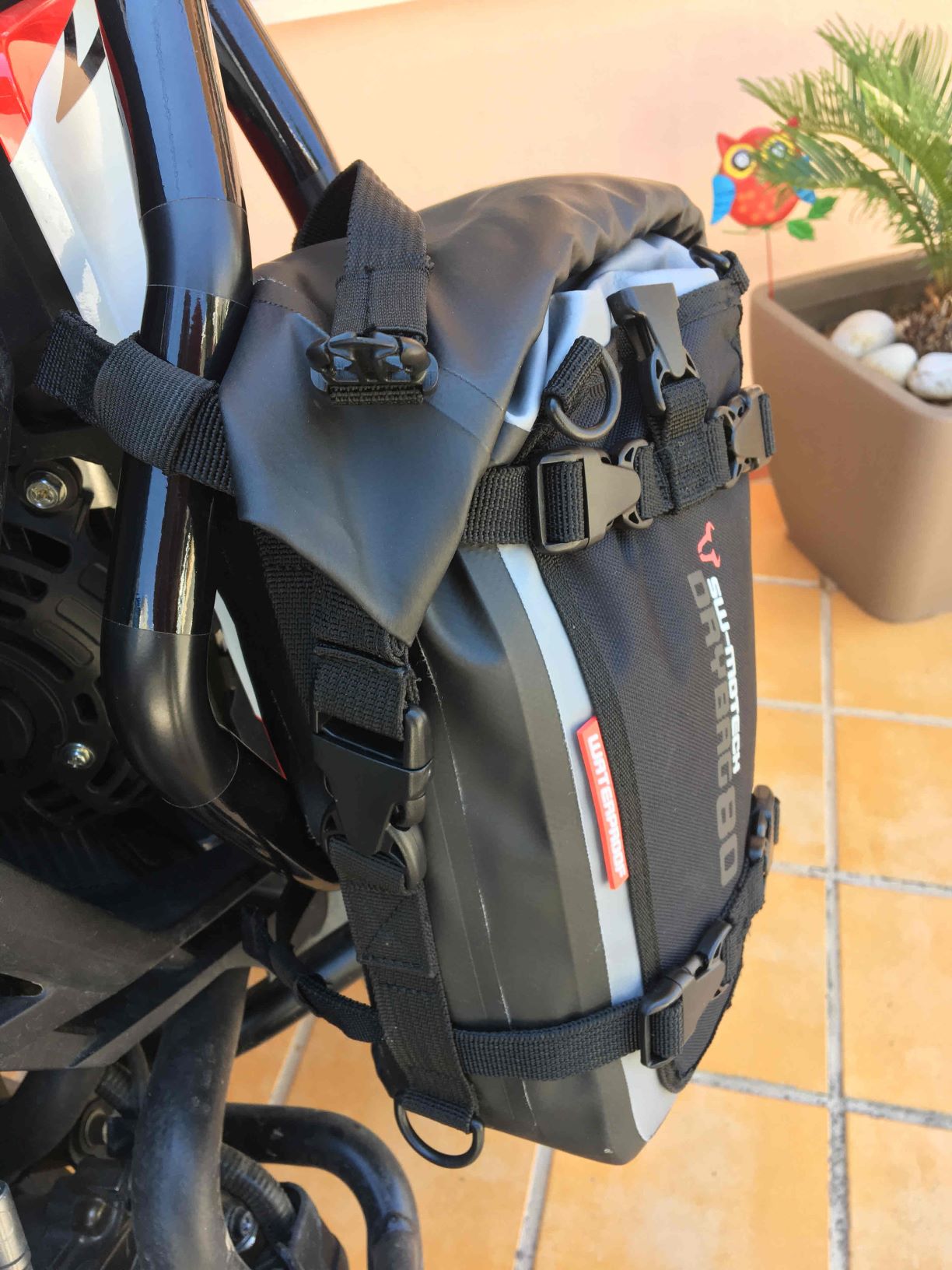 SWM Drybag 80 als Seitentaschen am TT Tanksturzbügel