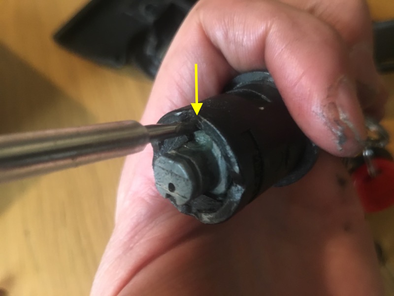 Ist bei mir schon länger her. Aber ich denke du musst das „Verriegelungsplättchen“ zurückschieben. Ist eigentlich auf einem der Bilder oben zu sehen. Und dann in der richtigen Position zurück schieben. Habe hier noch den alten Zylinder liegen. Könnte versuchen Fotos davon zu machen um das Innenleben zu zeigen …