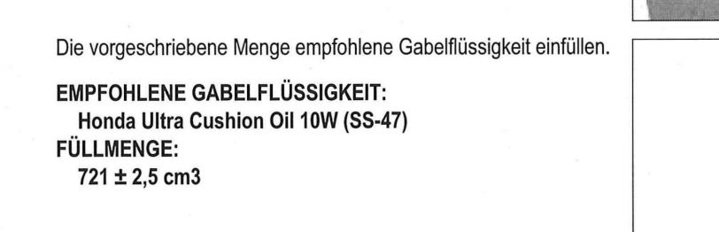 Original ist laut WHB die Gabel mit 721 cm³ Honda-Öl 10W befüllt.