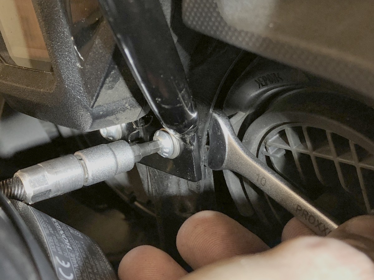 Das größte Problem ist tatsächlich, die beiden Schrauben von hinten durch die Löcher zu bekommen. Mit einer Spitzzange geht das ganz gut. Außerdem flutscht es besser, wenn man das Gummi der Lampenabdeckung mit Vaseline einschmiert. Dann rutscht der Schraubenkopf besser vorbei. Das Wetter war hierfür heute optimal.