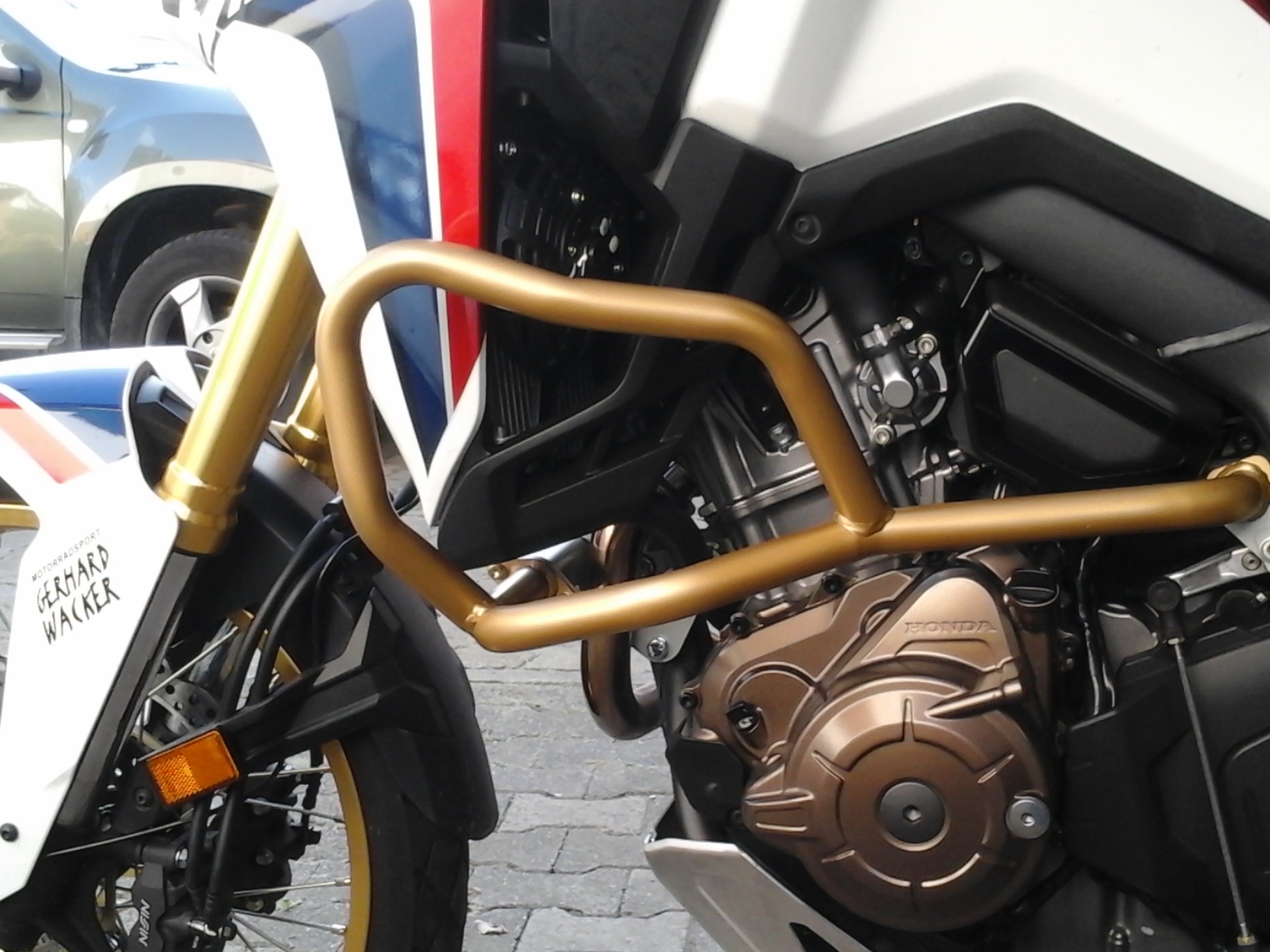 Hab mich beim :mrgreen: doch mal ausgekotzt was TT da abliefert. Kann er Ihnen gerne mal Grüsse von mir ausrichten. Ja: Die Bügel sind robust, passen ganz gut und bieten wohl auch ordentlichen Schutz. Aber die schwarze Beschichtung kann man mit dem Fingernagel abkratzen. Ein mal die Wanne bei der Montage dran gestossen und der Lack ist ab. Hab die für die XRV daneben liegen. Da verkrazt gar nix, wenn man bei der Montage mal was dran haut. Der (Italienische?) Hightech-Beschichter liefert Müll! Viel zu dünn das Zeugs. Kein Wunder, das von 8 Bügeln 7 schon beim Transport verkratzt waren und zurück geschickt wurden (eigentlich 8, aber ich hab mir den mit den wenigsten rausgesucht, weil ich die Schnautze voll hatte). :twisted: Momentan kann ich da wirklich nicht guten Gewissens eine Empfehlung abgeben. Nicht jeder akzeptiert es als Erstes mal schwarzes Tape drum wickeln zu müssen, was ich demnächst machen werde.