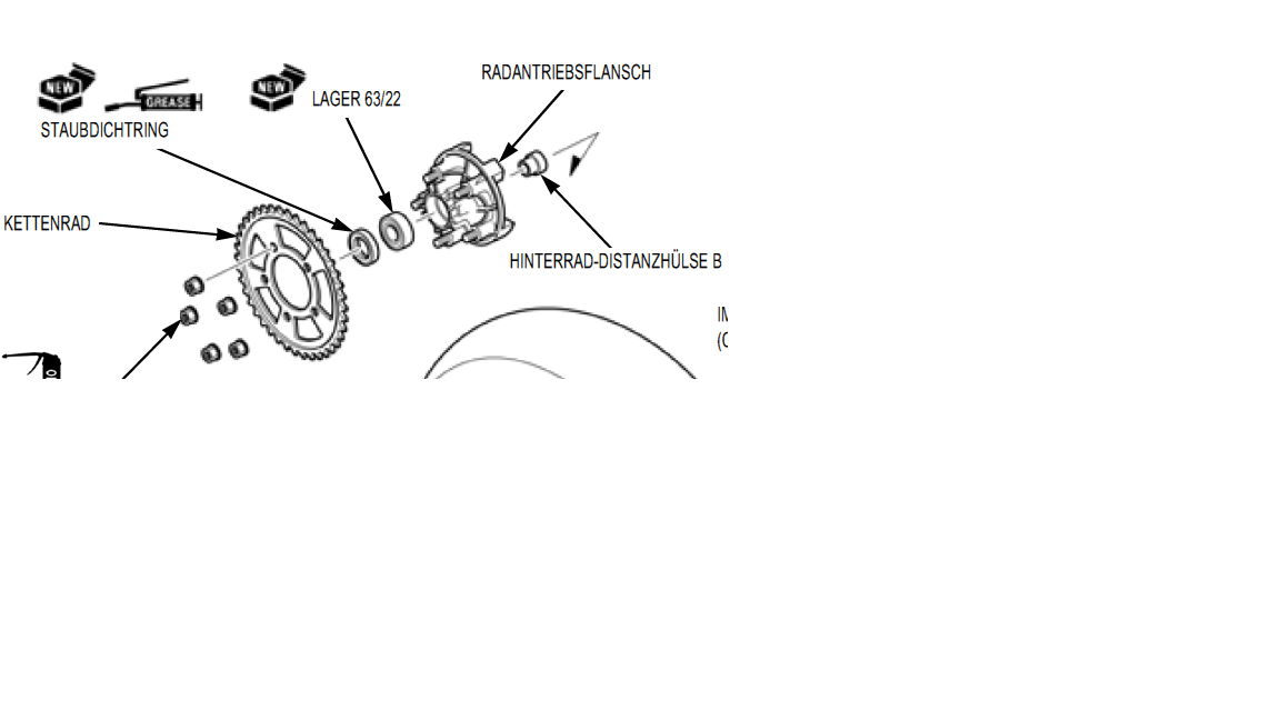 Zwischen dem linken Radlager und dem Lager des Kettenradträgerses befindet sich eine Distanzhülse.