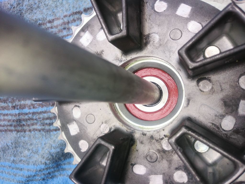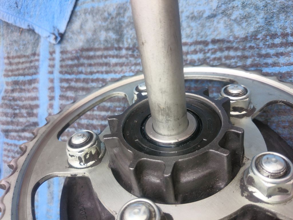 Von außen schließt die Staubdichtung am Kettenradträger bündig mit dem inneren Lagerring ab und die Achse passt so wie sie soll durch das Lager.