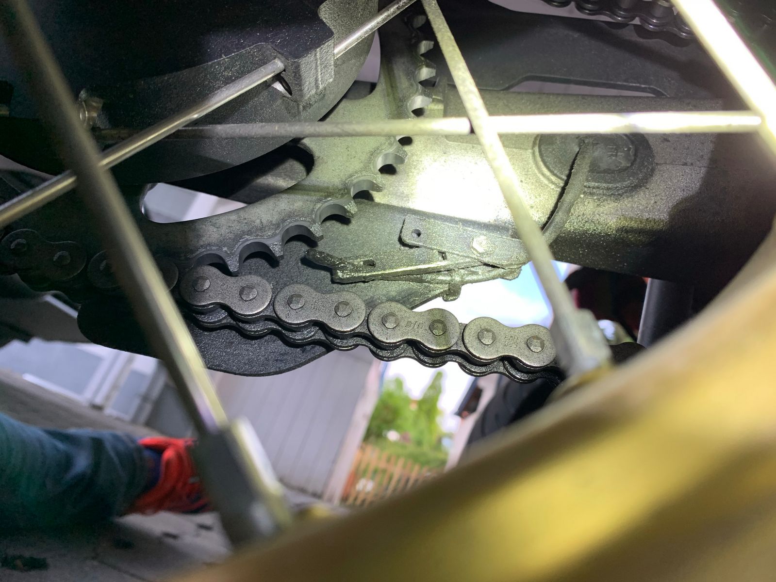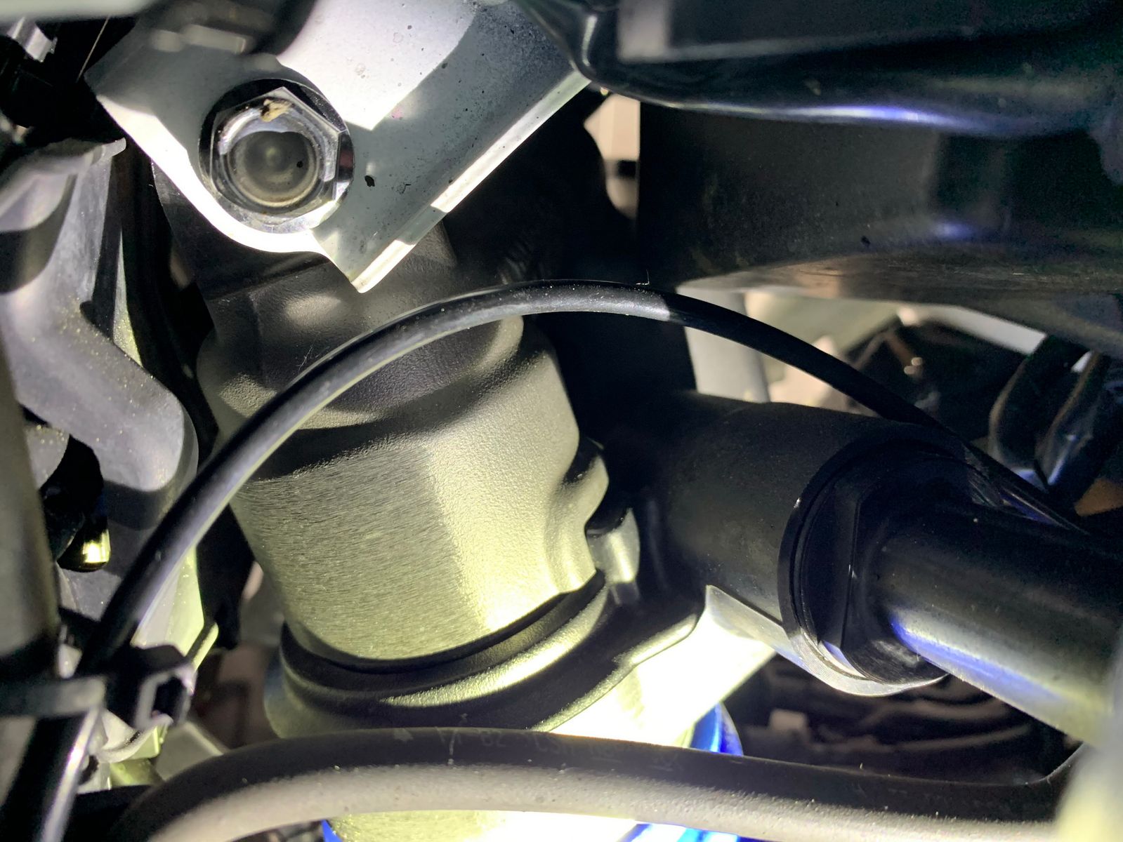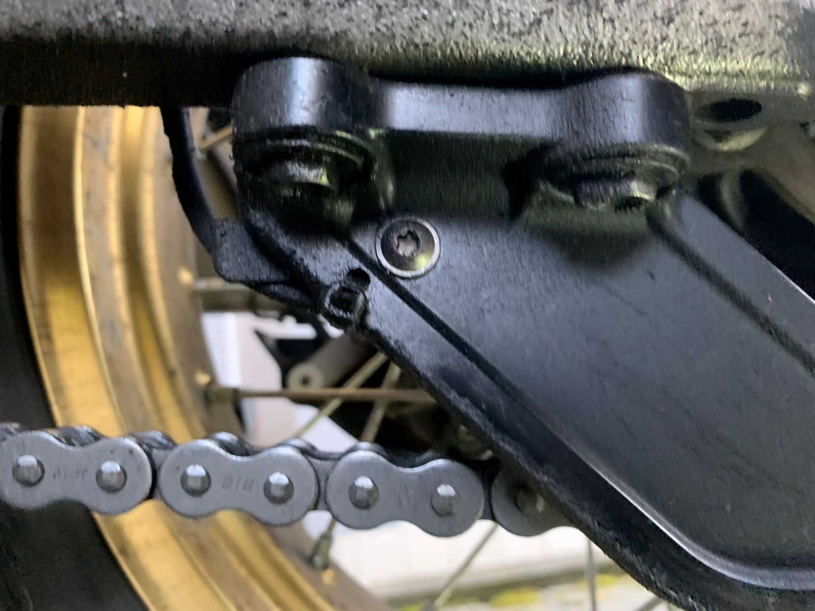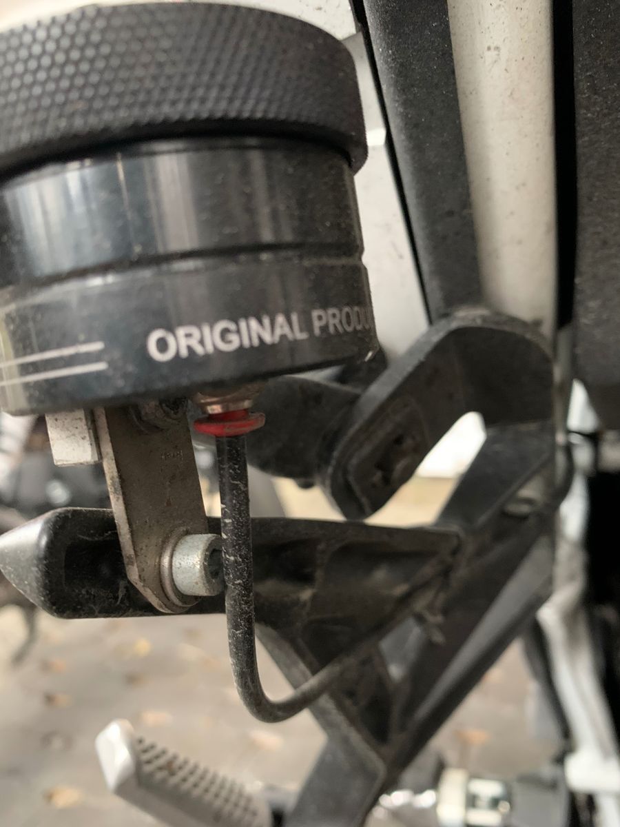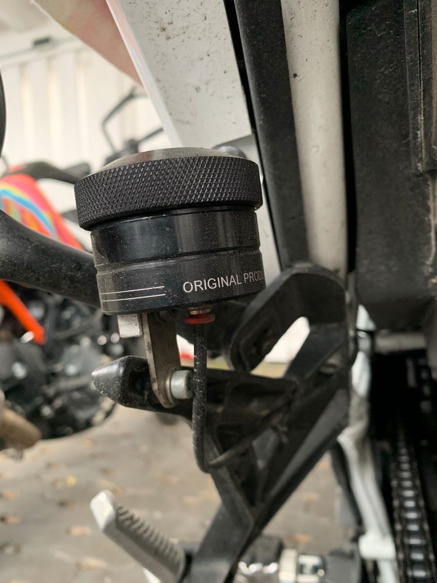 Der Einfachheit halber dann doch am Lenker rechts und die Tropfhalterung an der Finne am Kettenrad. Bei der Montage an der hinteren Fußraste käme ich mit montierten Seitenkoffern nur schlecht ran. Sind zwar nur ein paar mm zw. Kettenrad und Schraube des Halters, sollte aber reichen. Konnte mir das bei der letzten Schwarzwaldrunde ja schön ankuken ![]()