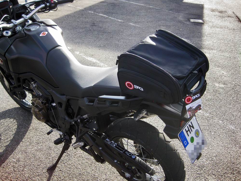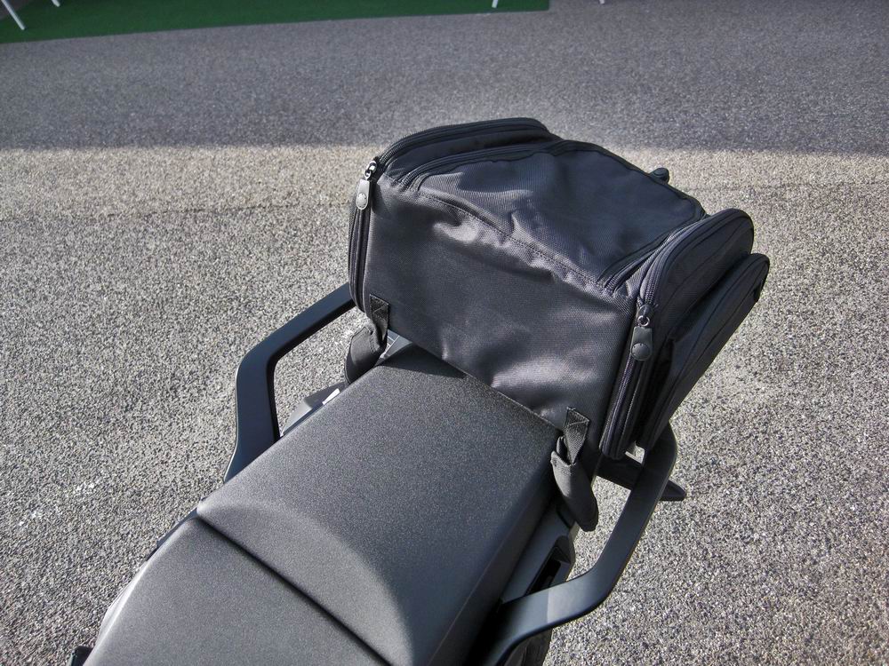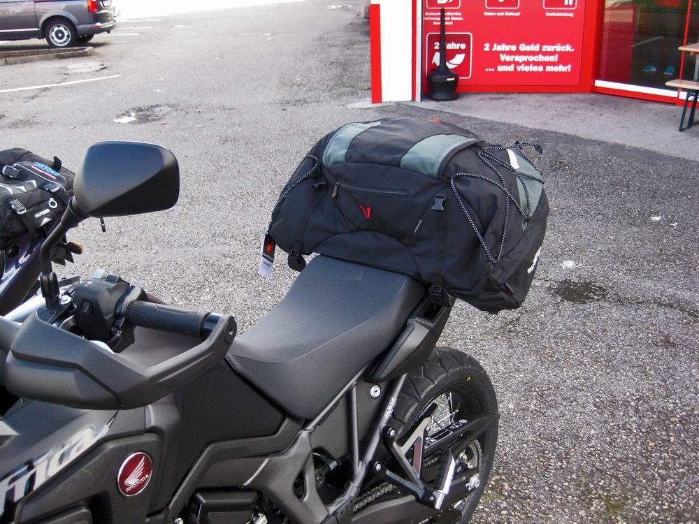 Die Tasche passt super auf den Soziussitz. Die seitlichen Überhänge der Tasche stützen sich gut auf den Soziusgriffen ab. Leider ist die Tasche etwas unförmig im ungefüllten Zustand. Habe schon meine Motorradjacke reingestopft, war aber immer noch zu wenig (logo, bei 50 Liter Volumen...).