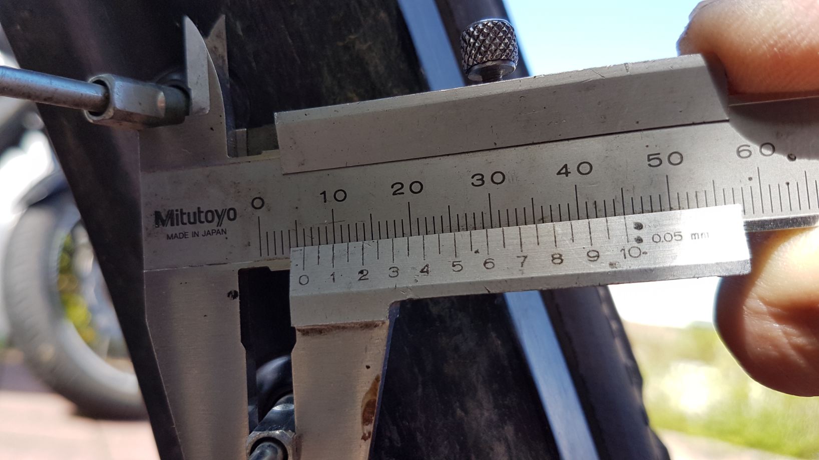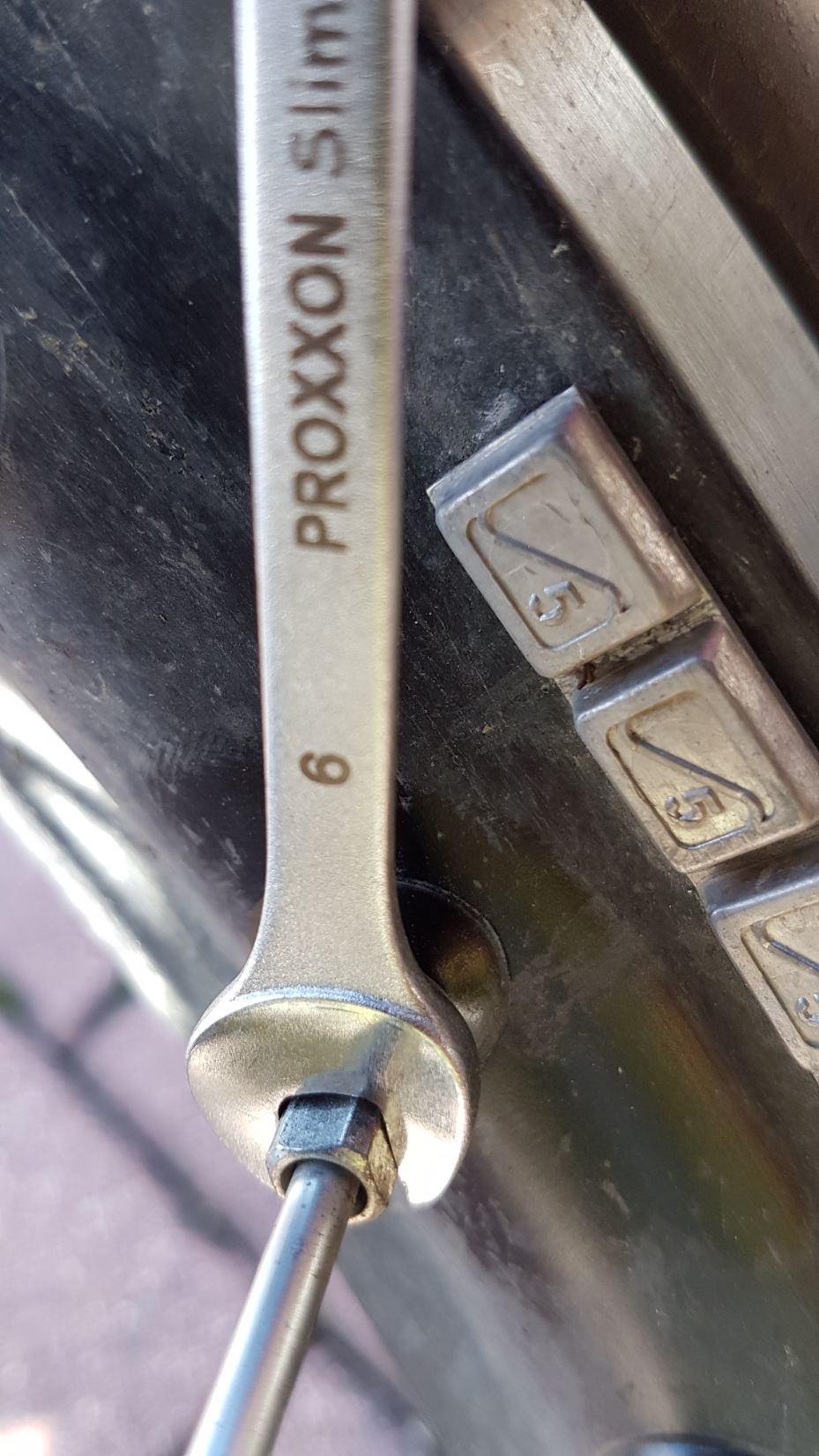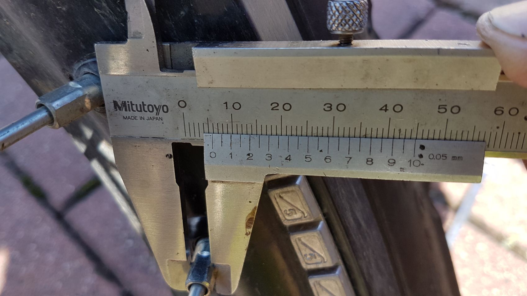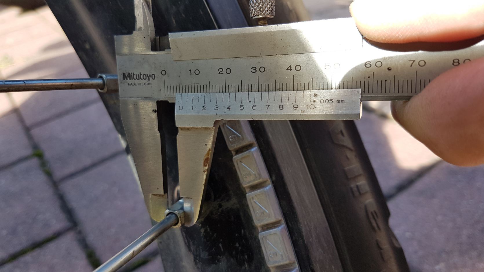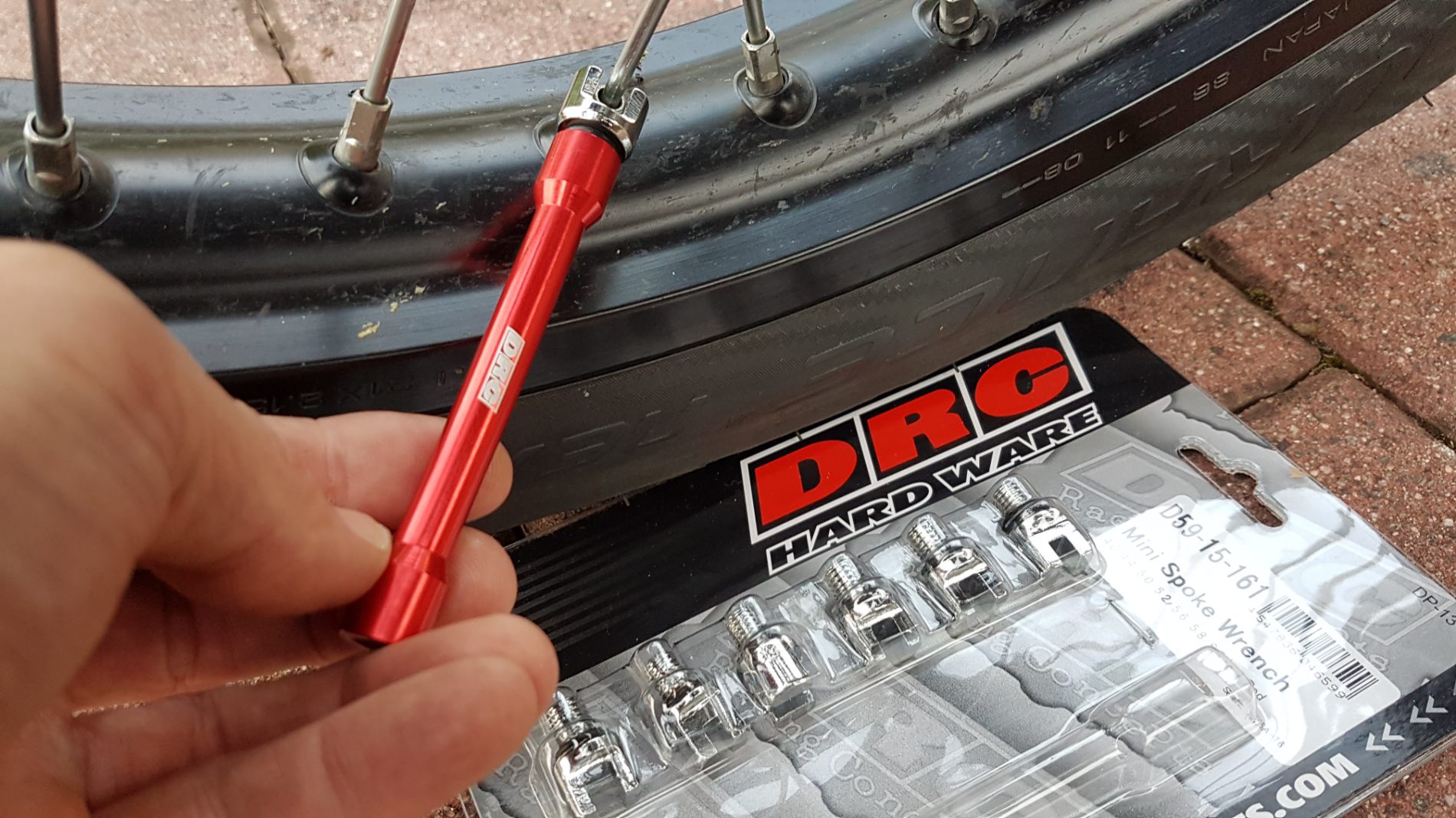 Dann haben wir auf dem Hauptständer den Felgenrundlauf gecheckt. Festgestellt dass die Felge trotz lockerer Speichen nix hat.
