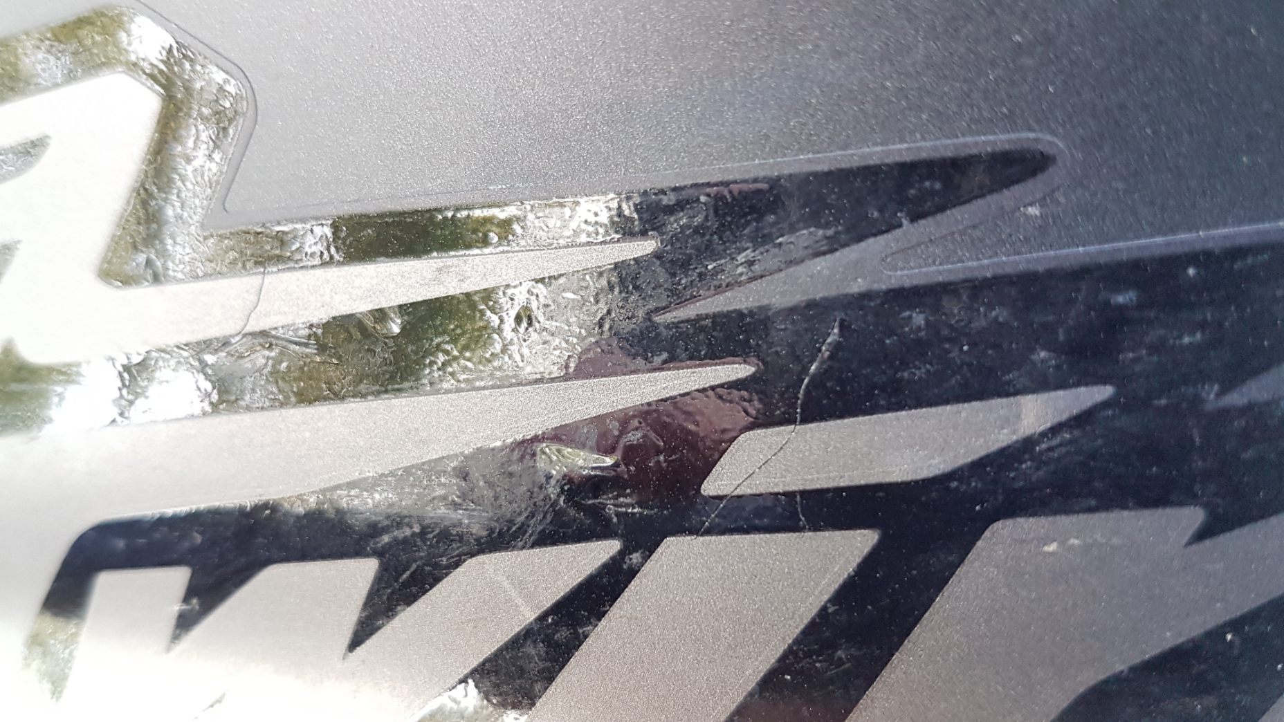 Schriftzug-Aufkleber plötzlich Blasen und Risse