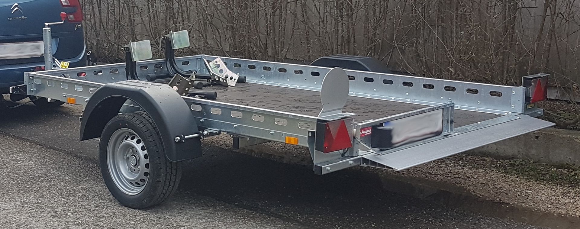 BTW ... wir haben am Mittwoch unseren neuen Anhänger geholt. Mit angeschraubten Wippen. Dazu wurden auf der Unterseite 5 mm starke Flacheisen montiert, in die M8-Gewinde geschnitten wurden um die Wippen von oben zu verschrauben. Ein Wechsel auf mittige Montage mit einer Schiene, um nur ein Motorrad transportieren zu können ist möglich. Achja, ist, wie schon mal geschrieben, ein Absenkanhänger von Unsinn. -