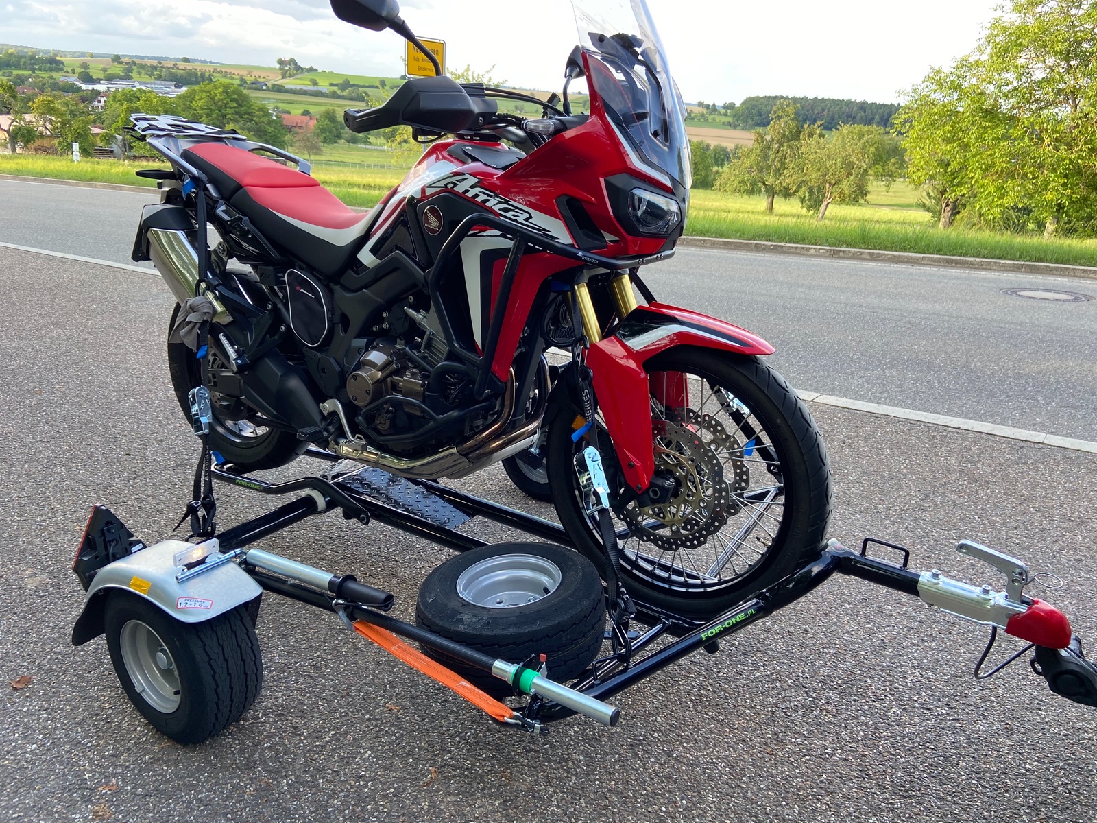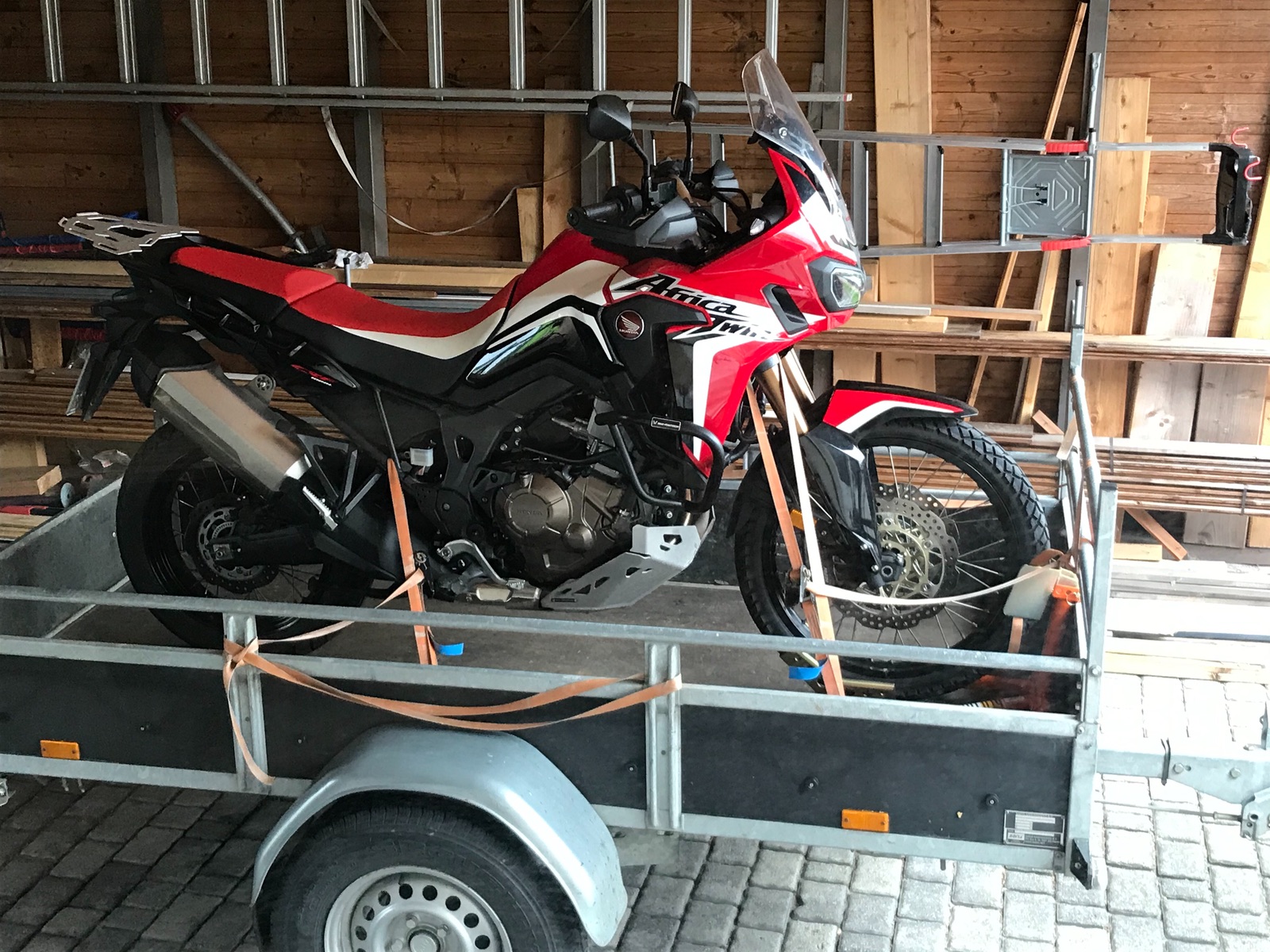 Africa Twin auf Anhänger verladen und verzurren