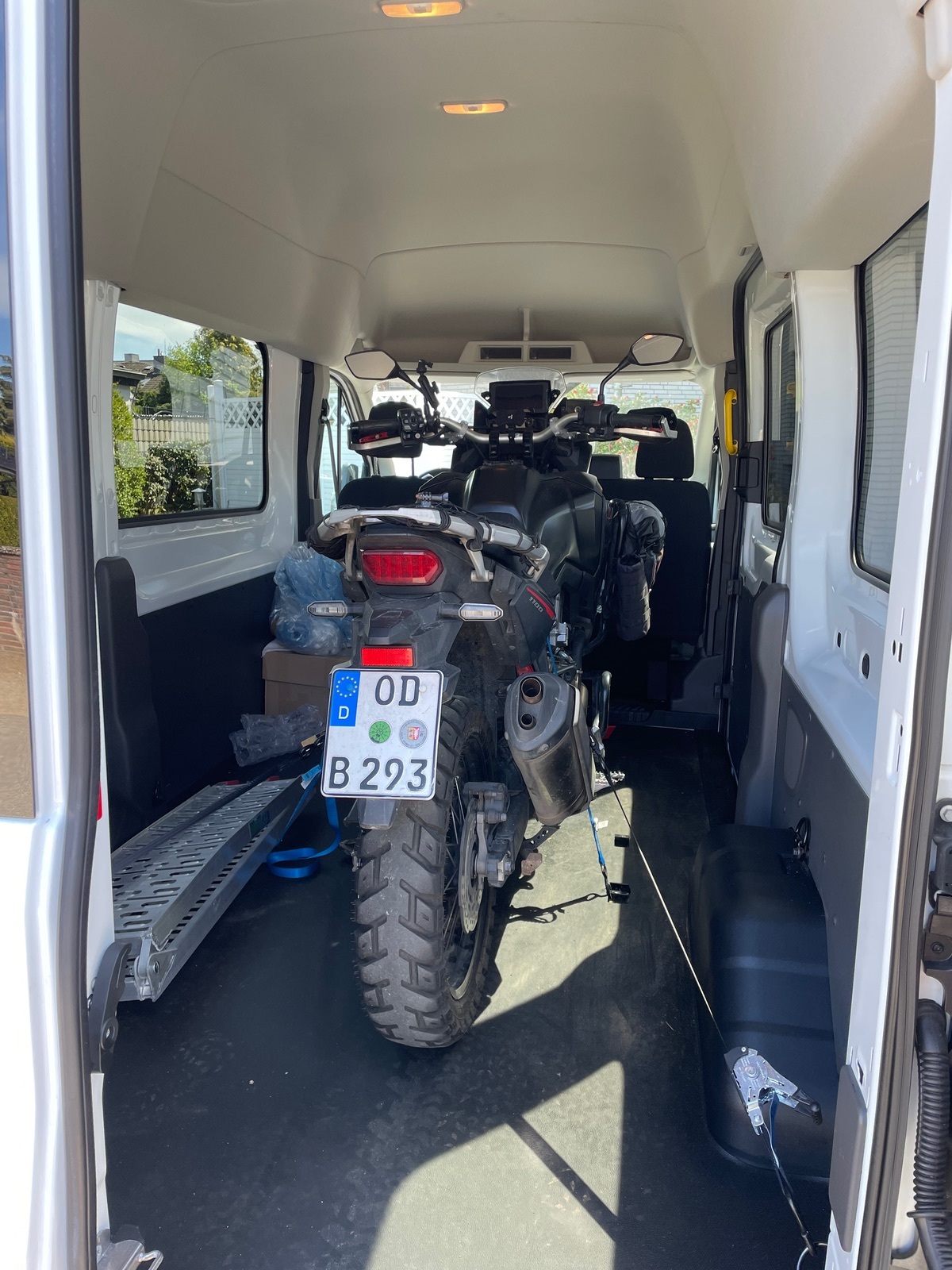 Africa Twin auf Anhänger verladen und verzurren