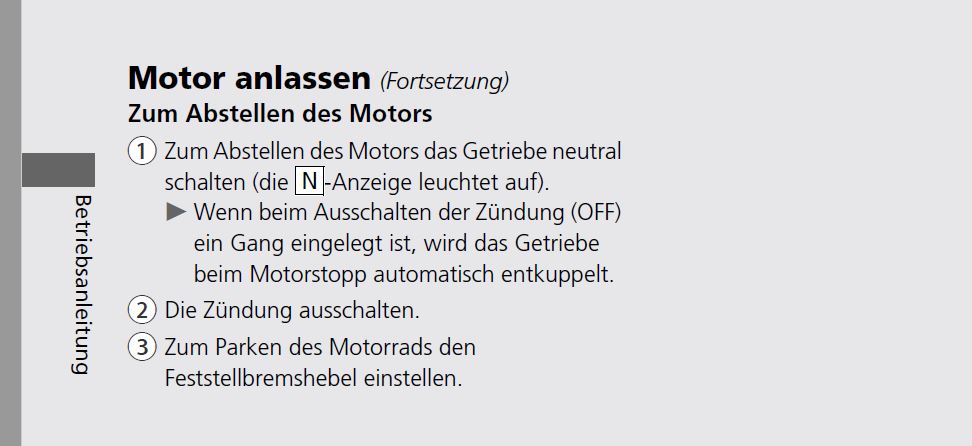 [attachment=0]Bedienhandbuch CRF - Abstellen des Motors.JPG[/attachment]Da kann ich nur sagen: "RTFM!!!"