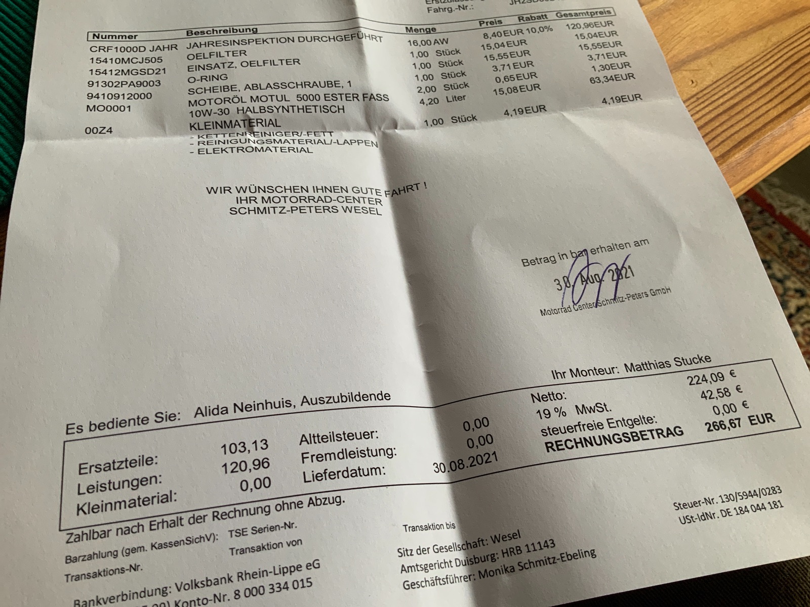 Bei den Inspektionskosten hatte ich nach der Rekordrechnung meines FHH für den Reifenwechsel ärgste Befürchtungen, aber ist denke ich ok - 266,67 Euro.