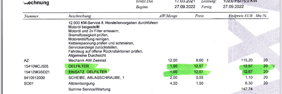 Junge, Junge, was sind das für Läden? Für nen Ölwechsel + Filter und was noch, Luftfilter? Absoluter Wahnsinn.